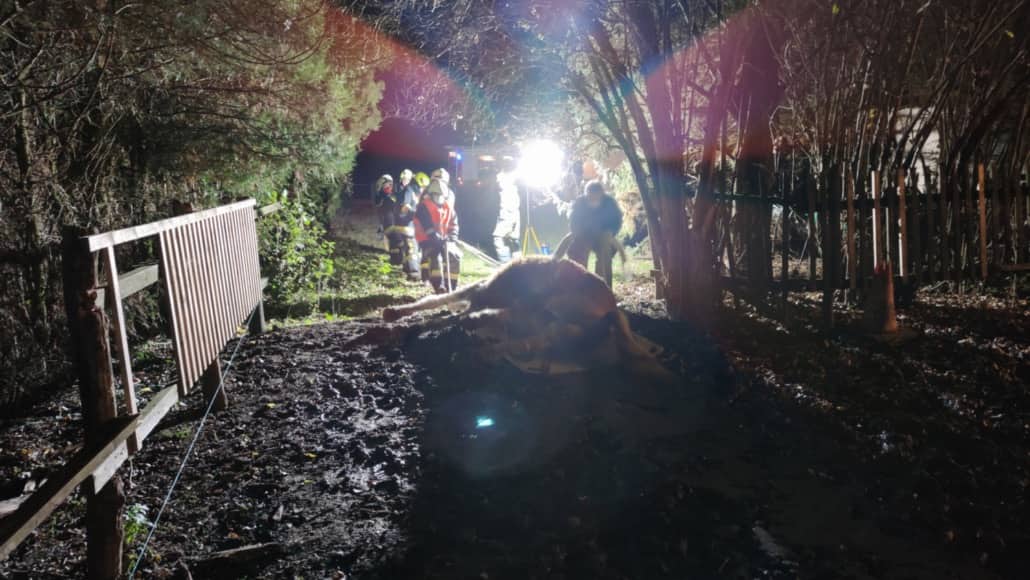 Am Freitag, den 20.11.2020 wurde die Feuerwehr Breitenwaida um 18:30 Uhr zur Bergung eines toten Pferdes alarmiert. Die Besitzer fanden dieses kurz zuvor leblos im Stall vor. Da die Tierbehausung an die 100 Meter von der Straße entfernt ist und so ein Abtransport durch die SARIA GmbH nicht möglich war, wurden wir für die Bergung herangezogen.