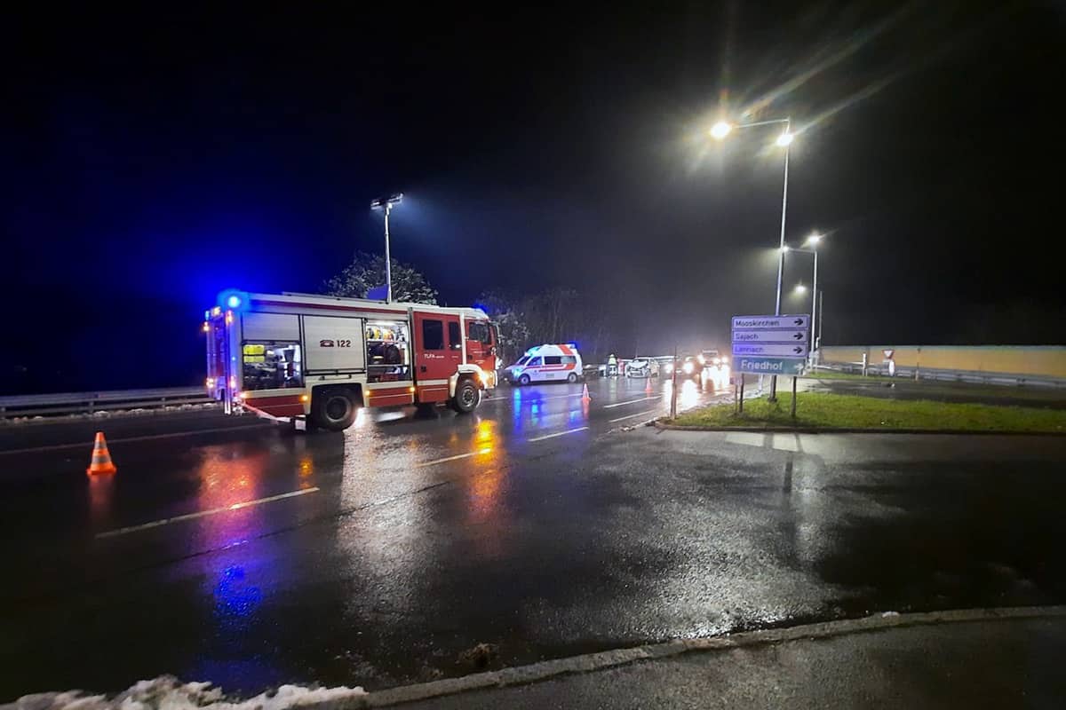 Beim Eintreffen an der Einsatzstelle, bot sich den Einsatzkräften folgendes Bild: Im Kreuzungsbereich der B76 mit der Mooskirchnerstraße kam es aus bisher ungeklärter Ursache zu einem Zusammenstoß zwischen zwei PKW’s. Bei dem Unfall wurden zwei Personen verletzt, welche vom Roten Kreuz erstversorgt wurden. Die Polizei führte die Unfallaufnahme durch.