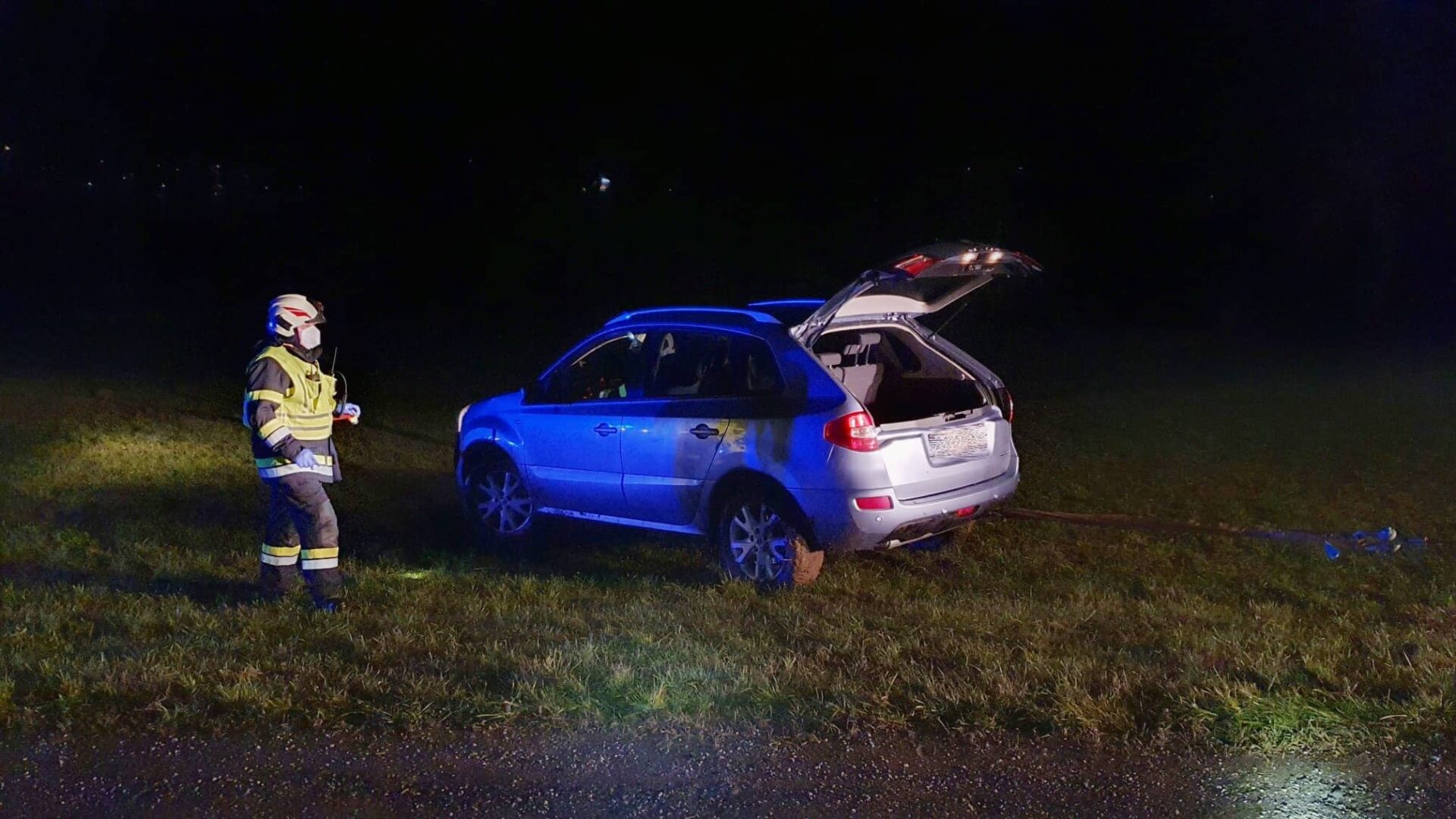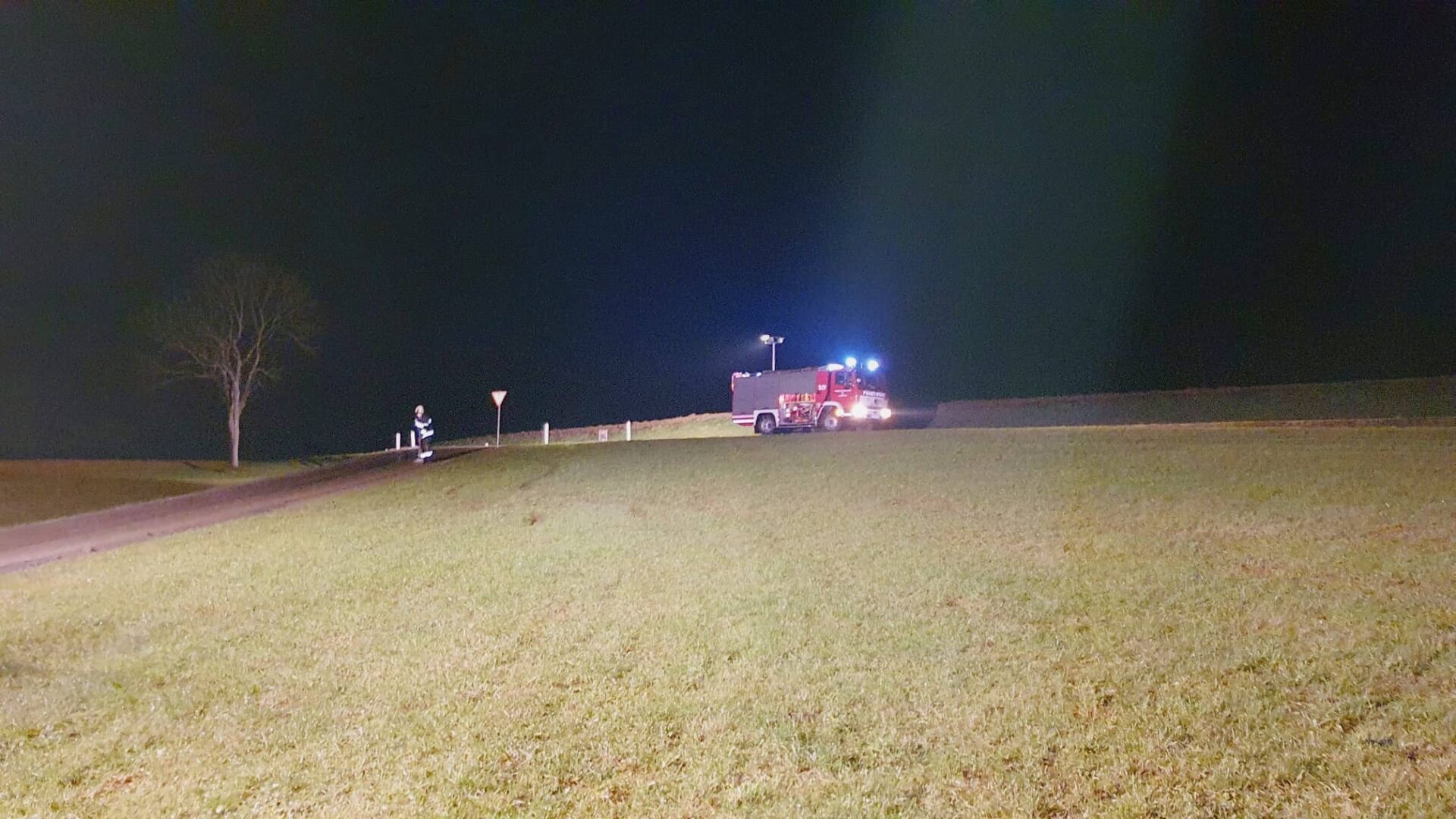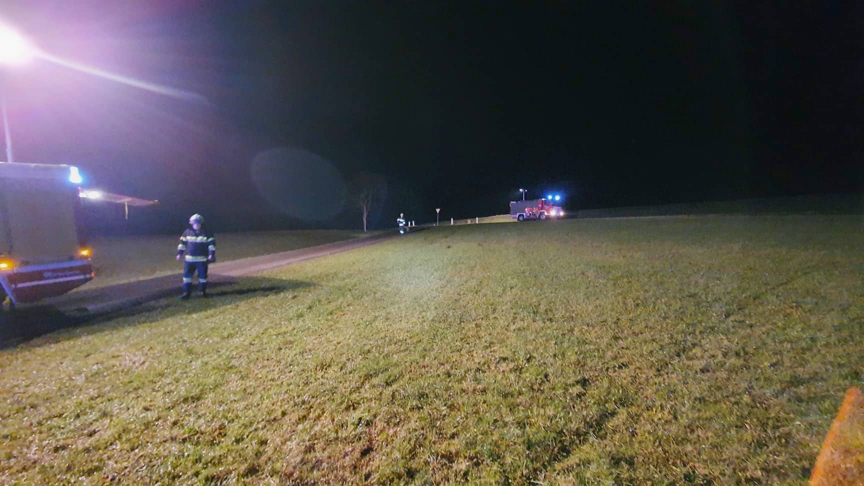 Der Fahrer eines PKW ist von der Straße abgekommen, hat Bäume touchiert und ist in einer Wiese zum Stehen gekommen, einige Meter unterhalb wäre der PKW in einen Teich gerutscht! Der Lenker war glücklicherweise nicht im Fahrzeug eingeklemmt und wurde unbestimmten Grades verletzt. Wir betreuten die verunfallte Person, sicherten die Unfallstelle ab, leuchteten diese großflächig aus, bargen das Fahrzeug und banden ausgelaufene Betriebsmittel.