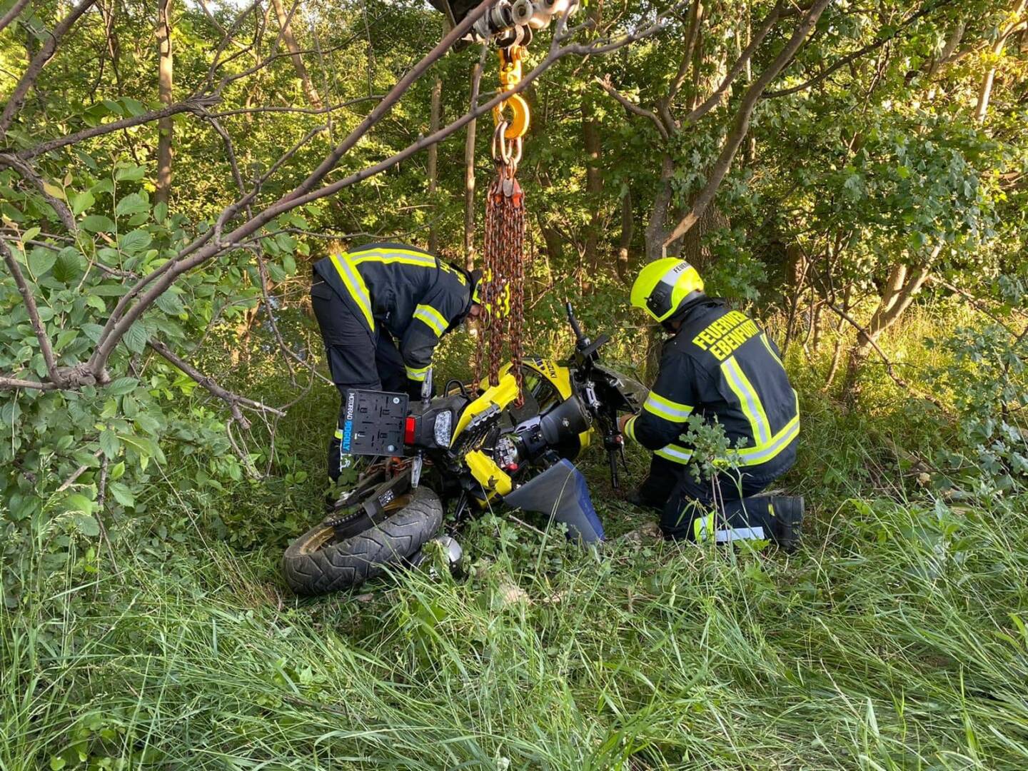 Die zur Bergung ausgerückte Feuerwehr Ebenfurth konnte die verunfallte Maschine mittels Kran rasch aus dem Graben bergen und für ein Abschleppunternehmen bereitstellen. Da sich die Unfallstelle im Einsatzgebiet der FF Eggendorf befand wurde diese darüber in Kenntnis gesetzt und rückte ebenfalls mit einem Fahrzeug zur Unterstützung aus. Neben den Feuerwehren standen zwei Polizeistreifen sowie das Rote Kreuz im Einsatz.