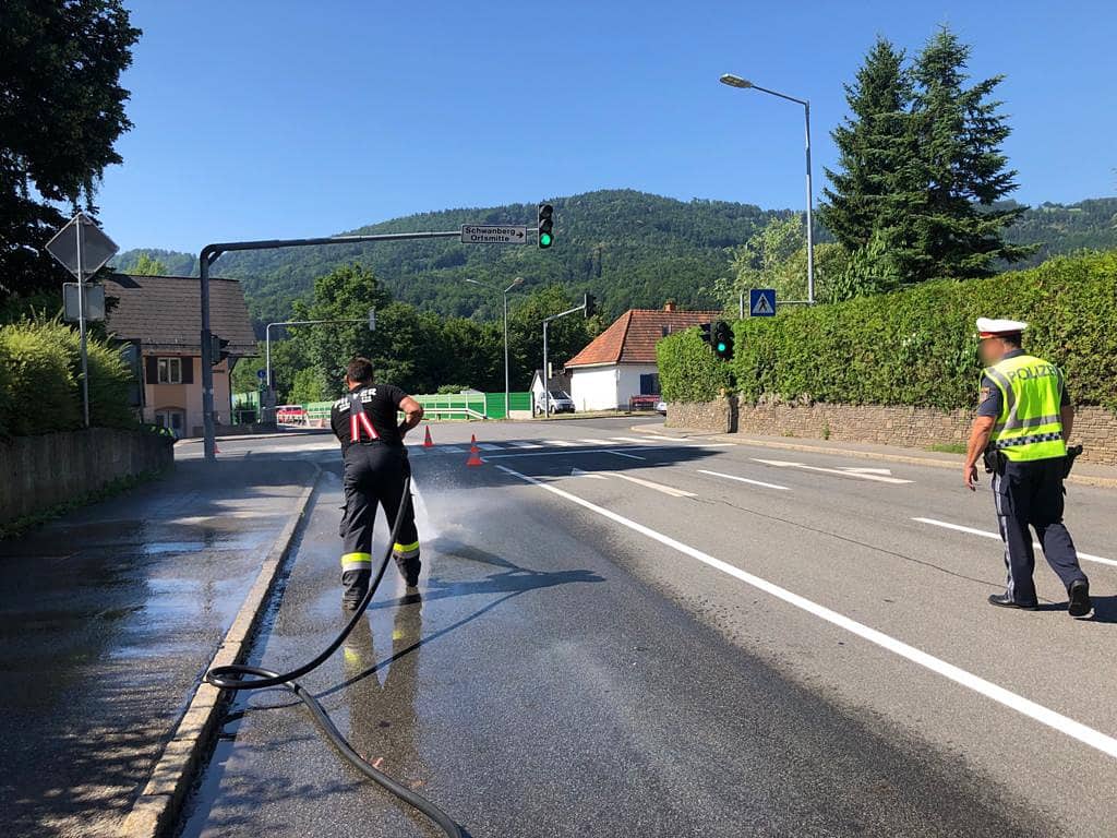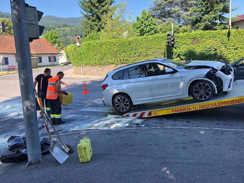 Die Polizei, die mit zwei Streifenwagenbesatzungen präsent war, kümmerte sich um die Sperrung der Unfallstelle und die Regelung des Verkehrsflusses im Kreuzungsbereich.