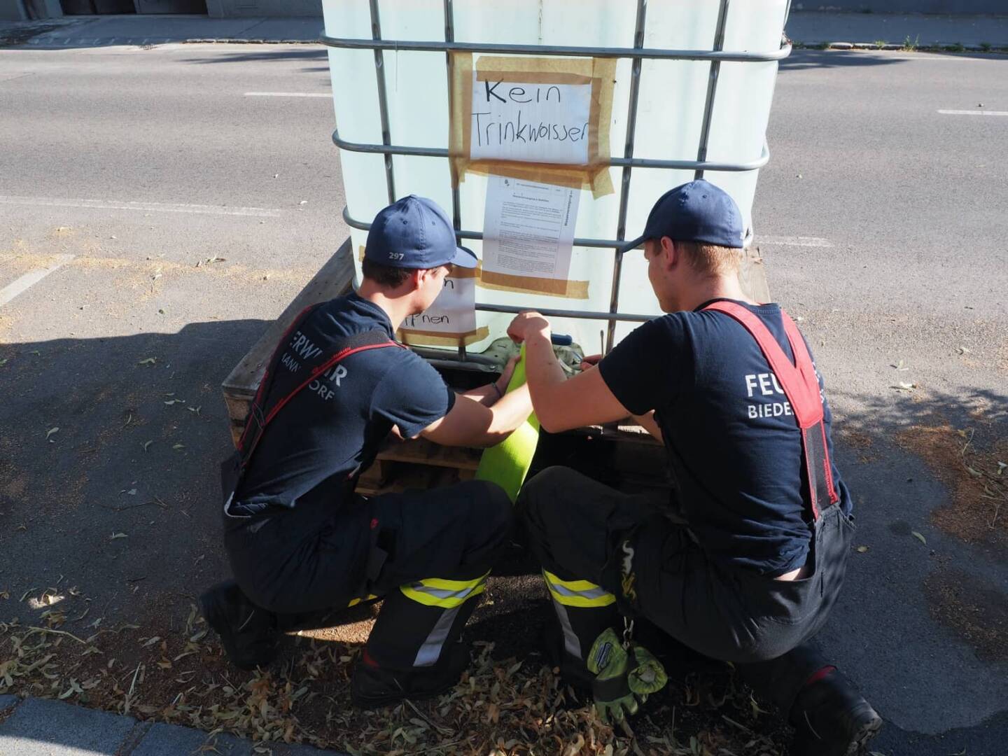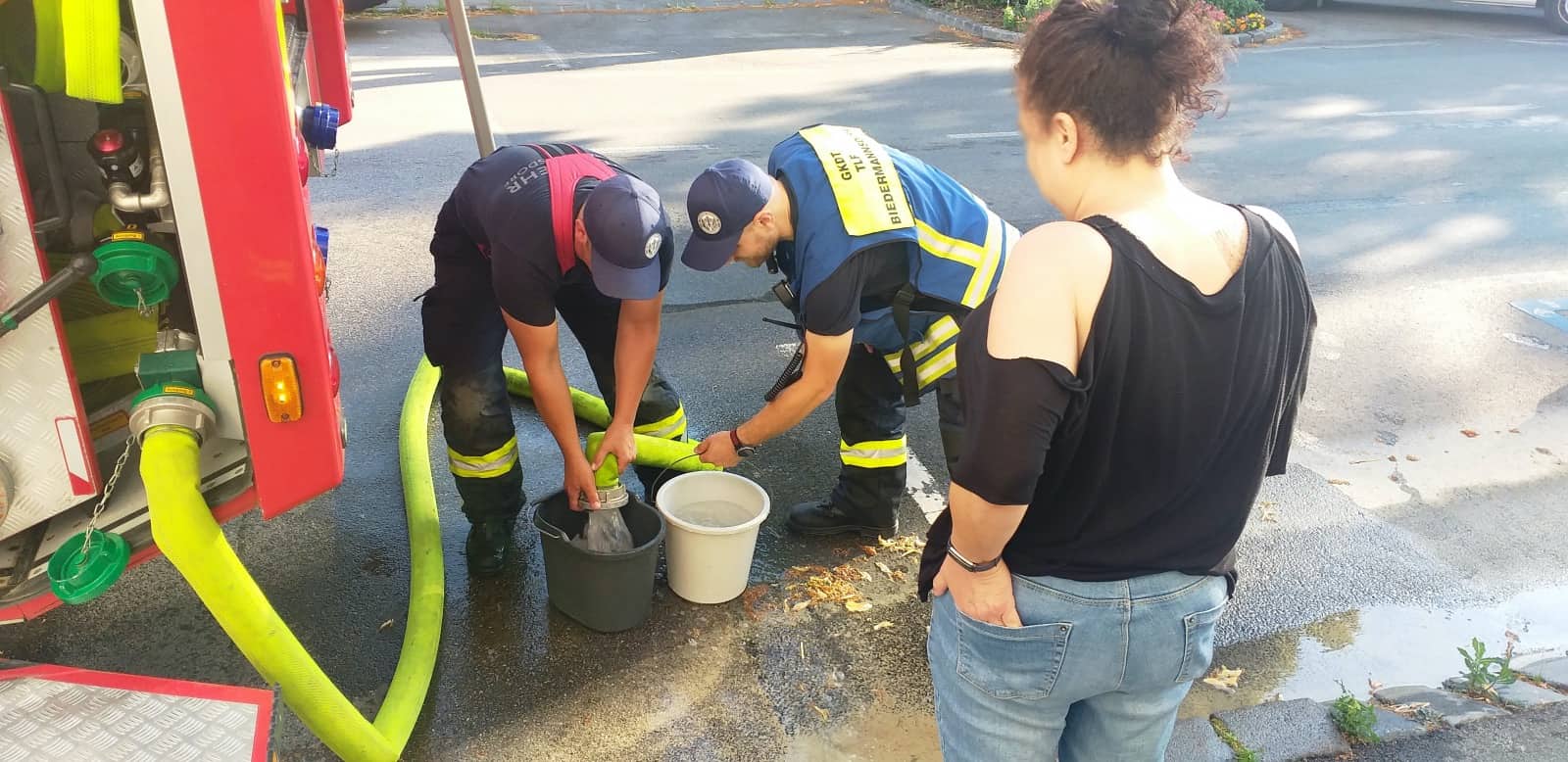 Da die Dauer der Arbeiten nicht abzusehen ist, wurde von der Feuerwehr auch ein Behälter mit 1000 Litern Wasser befüllt und der Bevölkerung für die Wasserentnahme zur Verfügung gestellt.