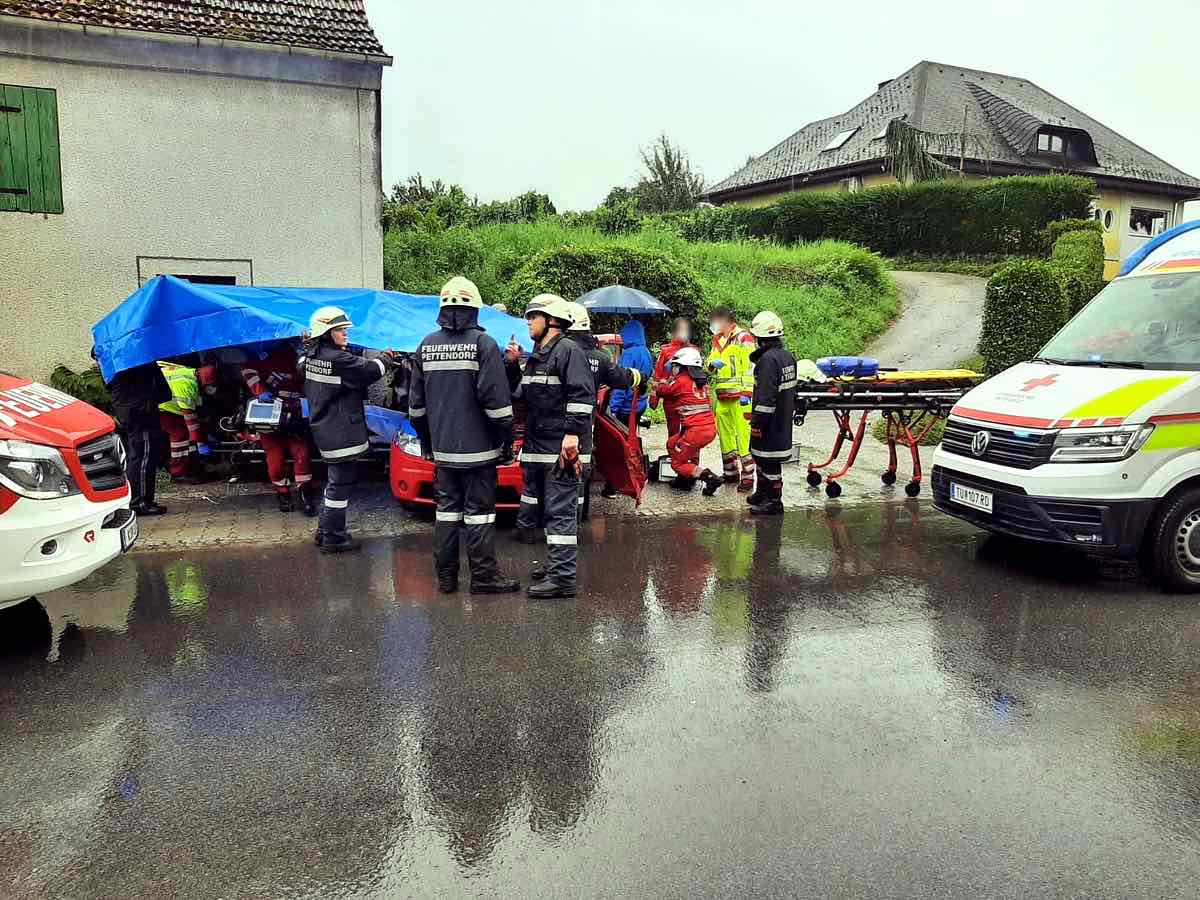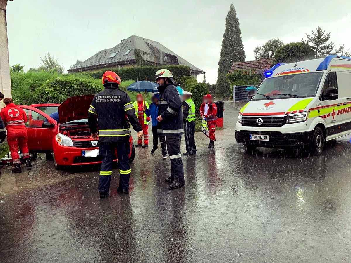 Am 29. August 2021 wurden die Feuerwehren Pettendorf, Hausleiten und Seitzersdorf-Wolfpassing mittels Sirenen, Pager und Blaulicht-SMS um 12:49 Uhr zu einem Verkehrsunfall mit vermutlich eingeklemmter Person im Ortsgebiet von Pettendorf alarmiert. Da gerade das Feuerwehrfest stattfand rückte binnen 2 Minuten das vollbesetzte HLF zur Menschenrettung aus.