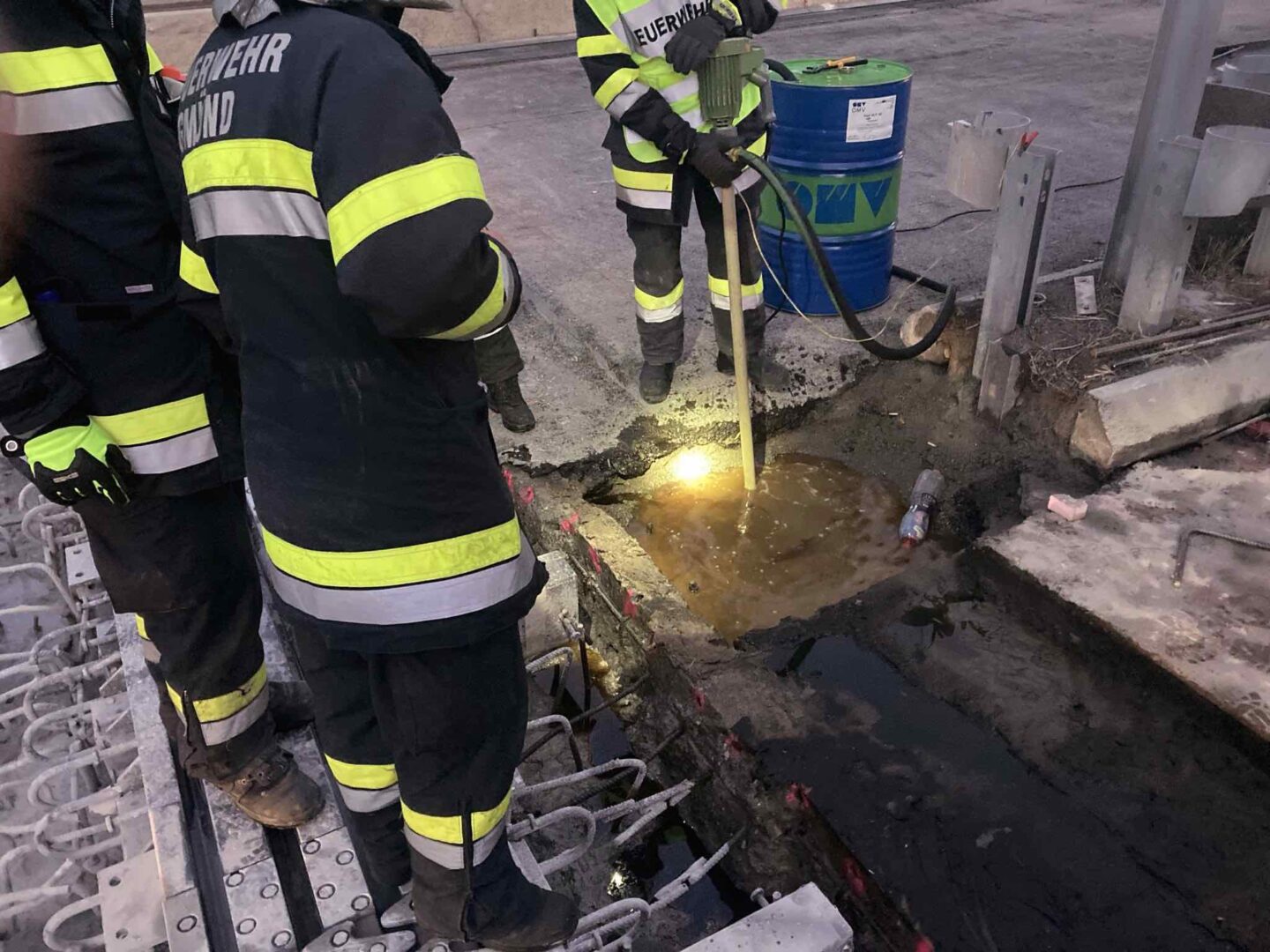 An der Einsatzstelle eingetroffen, wurde ein massiver Dieselaustritt am Fahrzeug festgestellt. Daraufhin wurde vom Einsatzleiter umgehend die Feuerwehr Eisentratten mit dem Ölwehr-Paket alarmiert, um einen möglichen Schadstoffaustritt in den unter der Unfallstelle verlaufenden Fluss zu verhindern. Zusätzlich wurde eine Alarmierung des Landeschemikers veranlasst, um die genauen Umstände einer möglichen Umweltgefährdung auszuschließen.