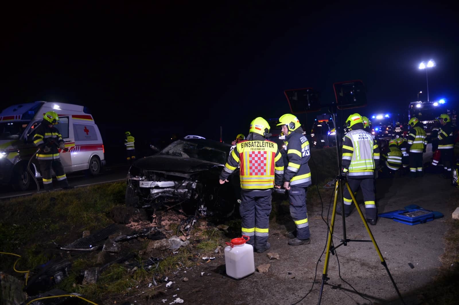 Nach Absicherung der Einsatzstelle und Errichten eines doppelten Brandschutzes mussten die Kameraden der Freiwilligen Feuerwehren Knittelfeld und Kobenz gemeinsam mit der Rettung und den Notärzten drei schwer verletzte Personen aus dem Unfallfahrzeug retten. Ein leicht verletzter Mann wurde ebenfalls von der Rettung betreut und nach einer fünften Person suchten die Einsatzkräfte der Feuerwehr mittels Wärmebildkamera die Umgebung ab.