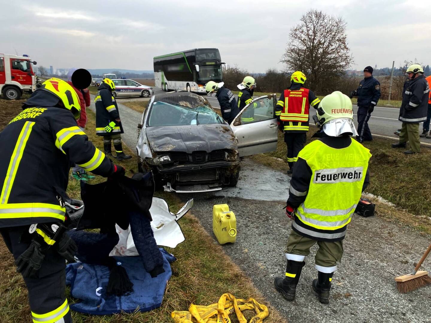 Eingesetzt waren, die Feuerwehren Mogersdorf Ort und Mogersdorf Berg mit vier Fahrzeugen und 24 Mitgliedern. Weiters waren drei First-Responder, der Notarzt aus Güssing, das Rote Kreuz Jennersdorf, die Polizei Königsdorf und Heiligenkreuz sowie Mitarbeiter der Gemeinde im Einsatz. Einsatzleiter der Feuerwehr war HBI Mike Kurta von der Feuerwehr Mogersdorf-Ort.