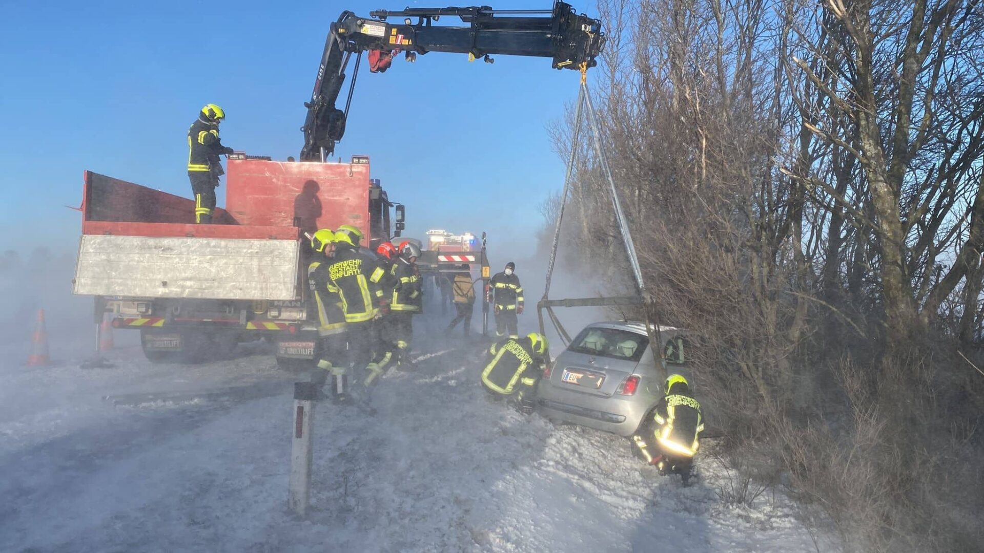 Starker Wind sorgte am 21. Jänner trotz strahlendem Sonnenschein für tief winterliche Fahrverhältnisse auf den Straßen um Ebenfurth. Die Kameraden der Feuerwehr Ebenfurth mussten in Summe sieben Mal zu technischen Einsätzen ausrücken.