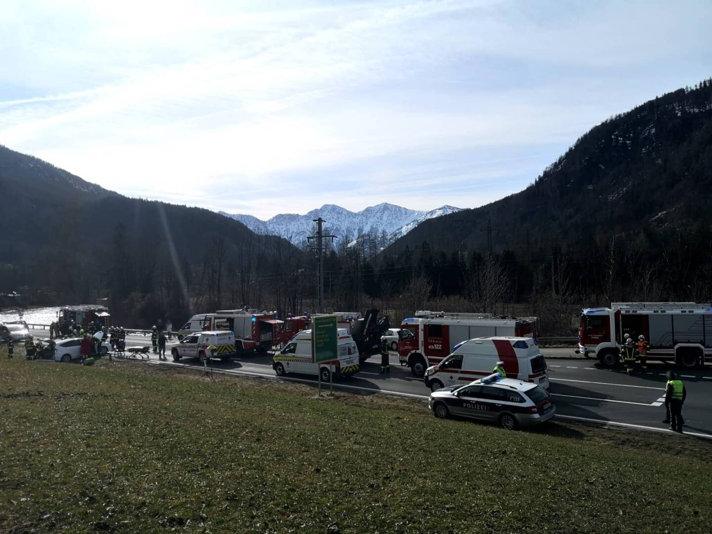Neben der HFW Bad Ischl, der FF Pfandl und der FW Sulzbach waren der städtische Wirtschaftshof mit der kleinen Kehrmaschine, die Bundespolizei, das Rote Kreuz und das NEF-Team im Einsatz.
