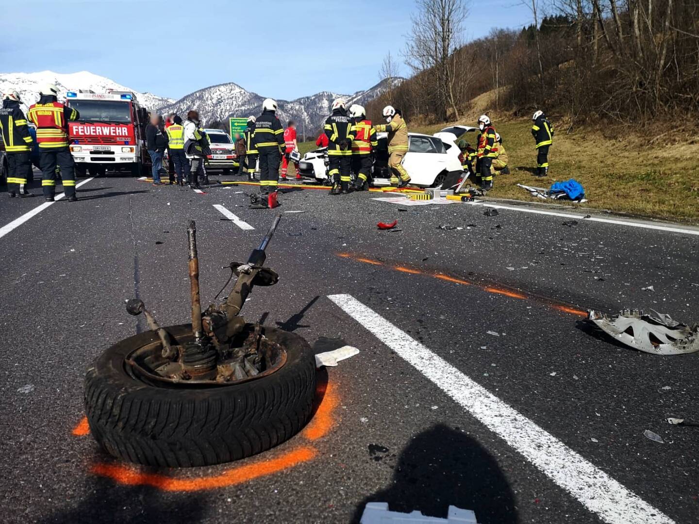 Mittels der hydraulischen Rettungsgeräte der FF Pfandl und der HFW Bad Ischl wurden die eingeklemmten Personen aus ihren Fahrzeugen befreit. Im Anschluss wurden die Verletzten mittels Rettungswagen und Hubschrauber abtransportiert. Abschließend wurde die Unfallstelle gesäubert.