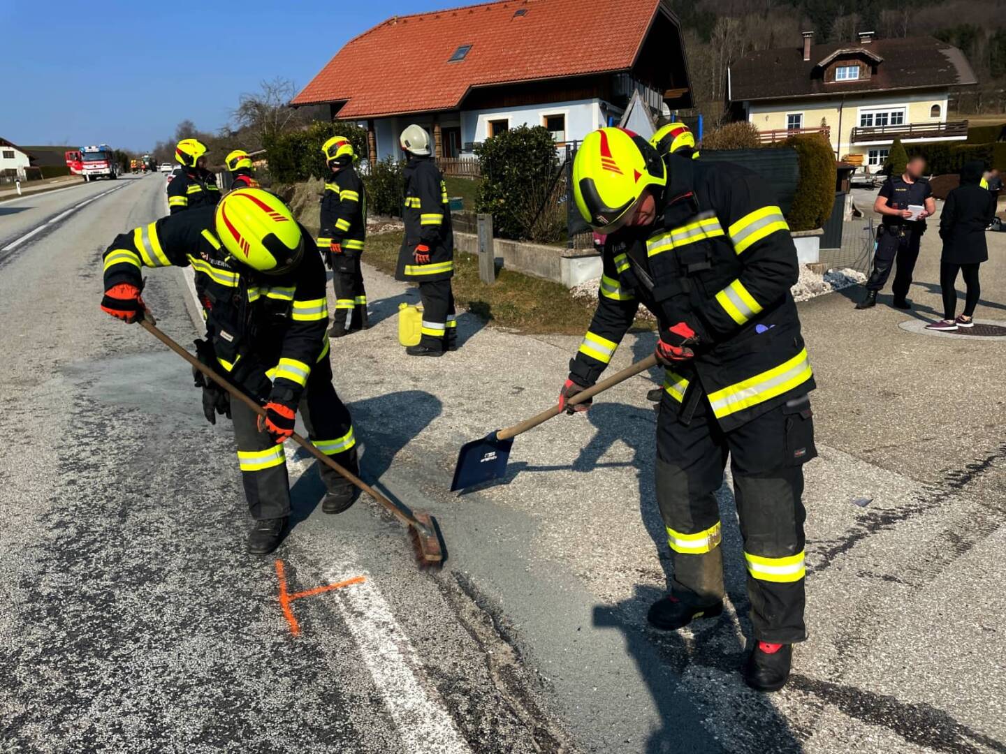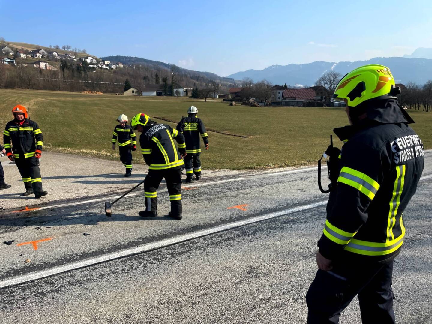 Somit beschränkte sich die Arbeit der Feuerwehr auf die Absicherung der Unfallstelle, das Freimachen der Verkehrswege und das Binden von ausgelaufenen Betriebsstoffen.