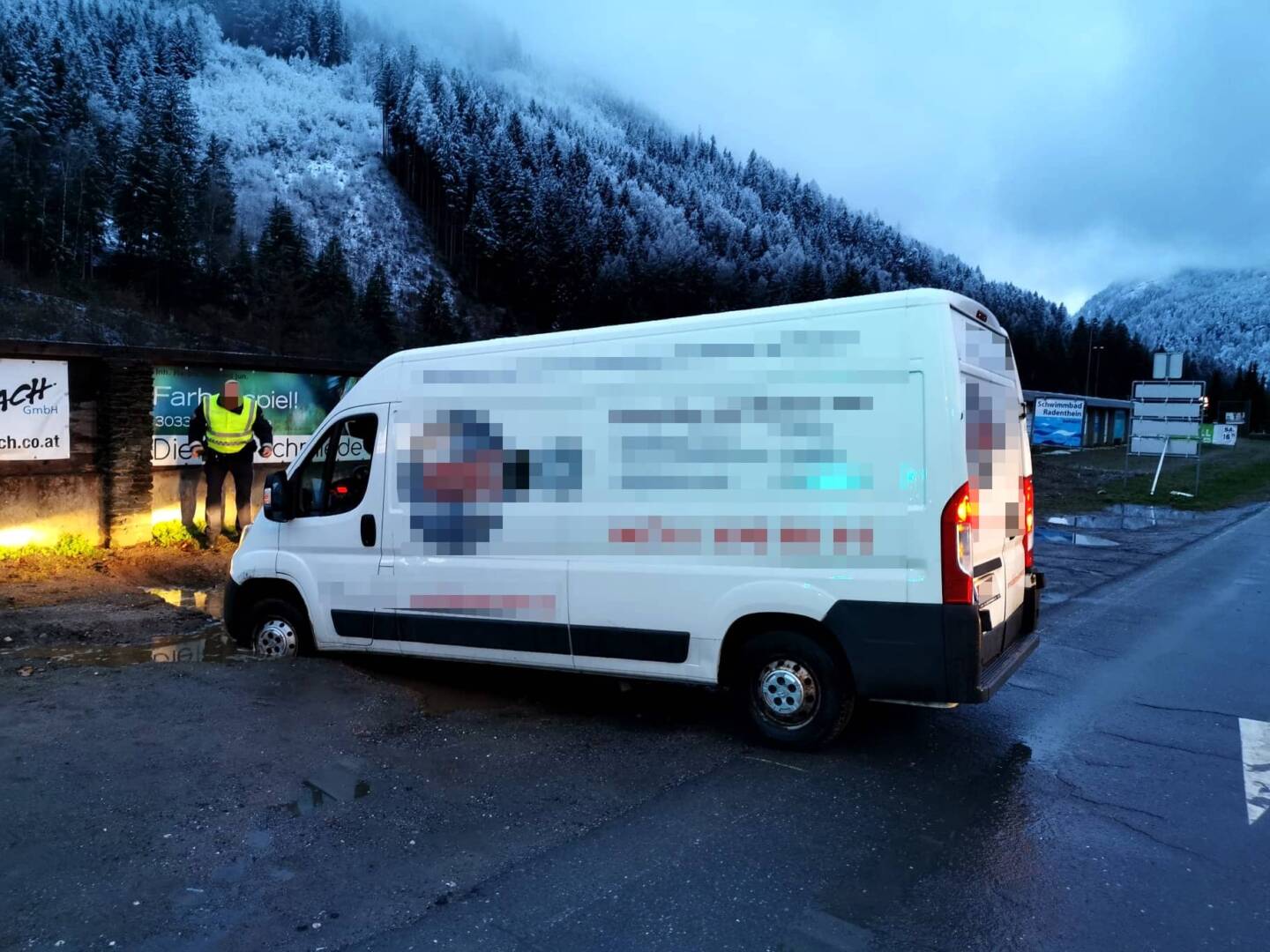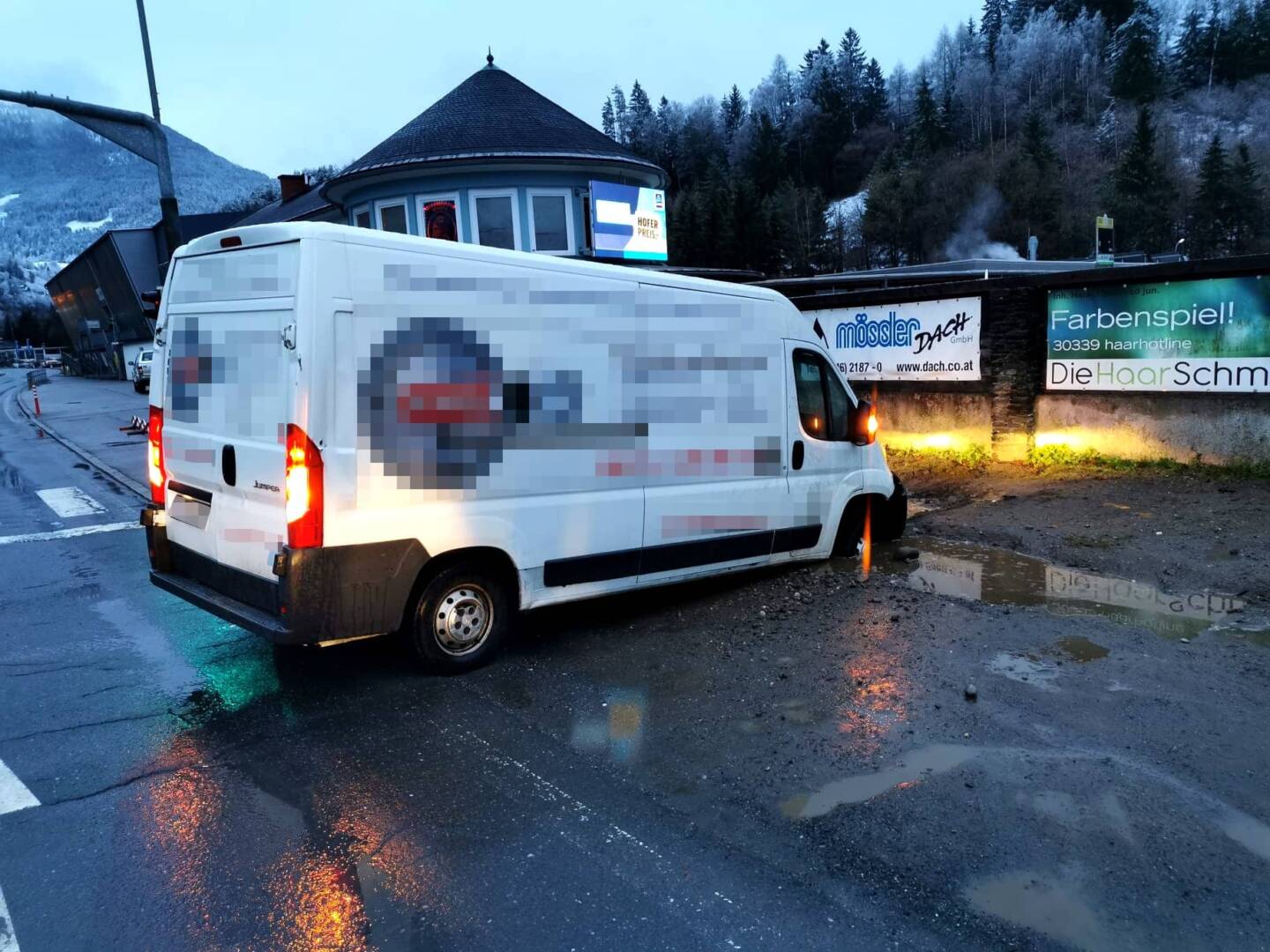Der Kleintransporter wurde mit der Seilwinde aus dem Schlamm gezogen und konnte seine Fahrt wieder fortsetzen. Dabei musste die B98 für kurze Zeit gesperrt werden.