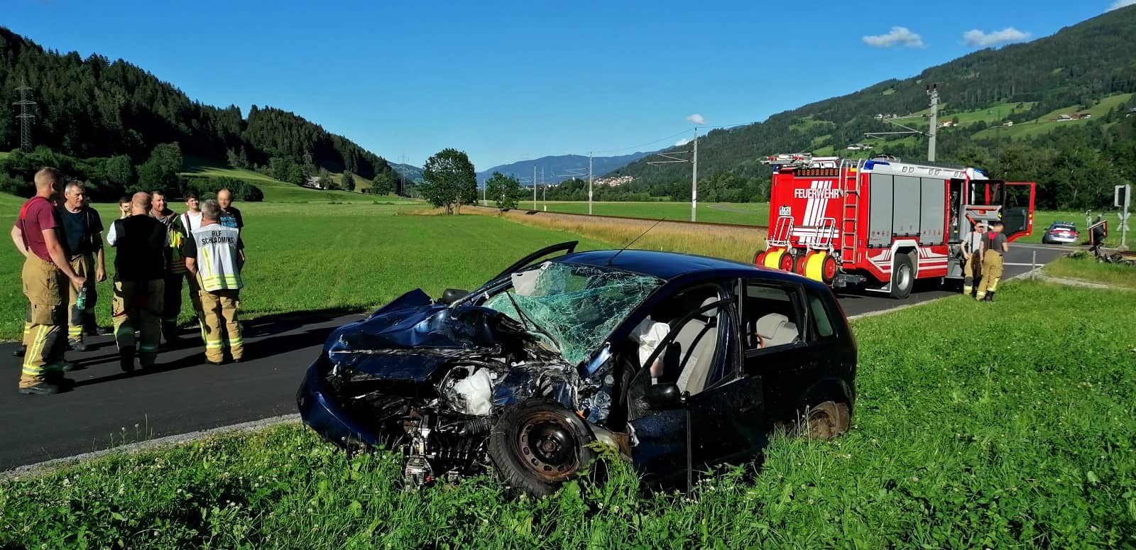 Gegen 17:30 Uhr verständigte die Polizei die Bereichsfeuerwehrzentrale Liezen, welche umgehend die Feuerwehr der Stadt Schladming alarmierte. Die Einsatzkräfte bargen die im PKW eingeklemmte Person mittels hydraulischem Rettungsgerät und unterstützten die Berge- und Aufräumarbeiten. Nach ersten Informationen blieben alle Zuginsassen unverletzt, seitens Bahn wurde ein Schienenersatzverkehr für die Bahnstrecke durch das Ennstal eingerichtet. Sowohl am Bahnübergang als auch an der Zuggarnitur entstand erheblicher Sachschaden.