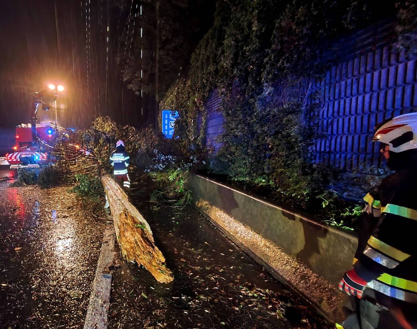 Eine etwa 60cm starke Fichte und einige weitere kleinere Bäume sind auf die Autobahnfahrbahn gefallen. Es wurden hierbei glücklicherweise keine Personen verletzt. Weiters waren wir bei einigen Baumbergungen im gesamten Gemeindegebiet im Einsatz um die Sturmschäden zu beseitigen.