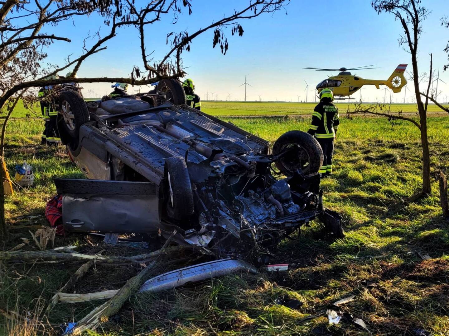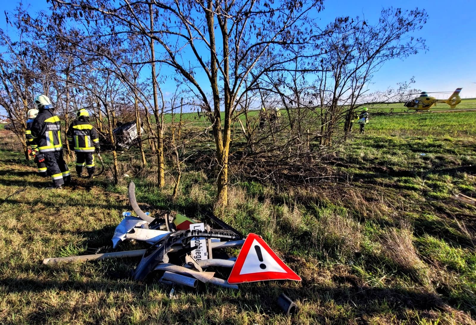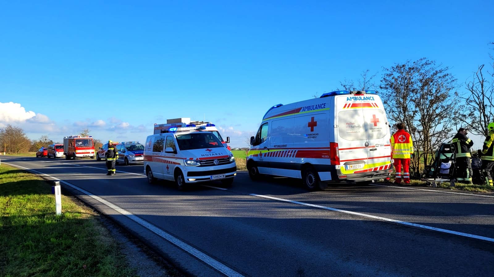 Ein PKW, aus Parndorf kommend, kam aus unbekannter Ursache von der Fahrbahn ab, überschlug sich in einer Baumgruppe neben der Fahrbahn und kam am Dach zu liegen. Die schwerverletzte Person wurde durch den Rettungsdienst erstversorgt und in weiterer Folge mit dem Rettungshubschrauber Christophorus ins Krankenhaus geflogen.