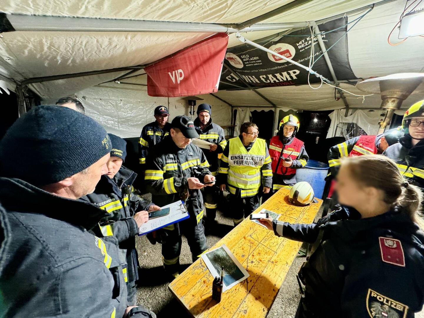 Die Polizei alarmierte die Feuerwehrdrohnen um 4.20 Uhr. Umgehend wurden die Suchgebiete eingeteilt und zugeordnet. Im Rahmen der ersten Lagebesprechung wurde in der übergreifenden Einsatzleitung entschieden weitere Feuerwehren und die Suchhundestaffel zu alarmieren. Knapp 15 Minuten nach der Erstalarmierung wurden die Feuerwehren aus Sankt Lorenz, Keuschen, Guggenberg, Mondsee und der Abschnittskommandant Peter Ramsauer nachalarmiert, um genügend Suchmannschaften zur Verfügung zu haben.