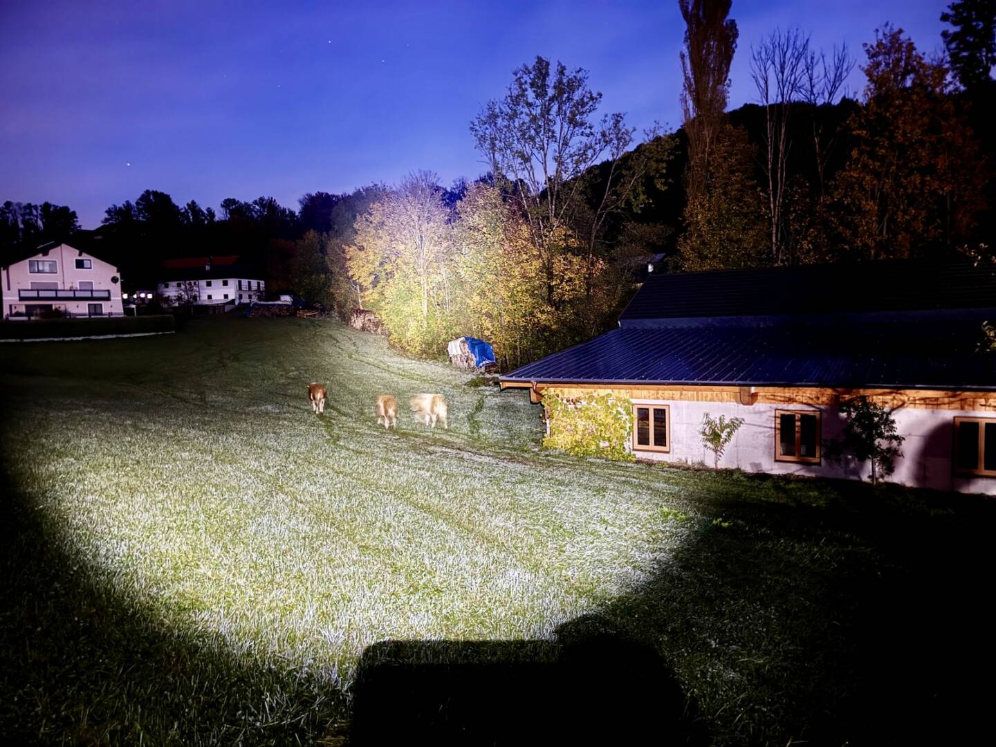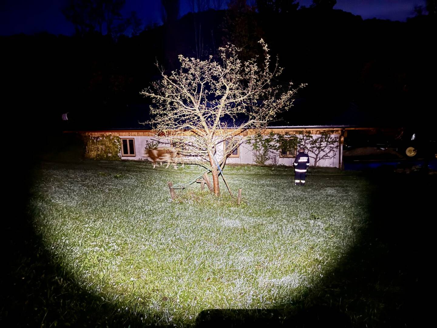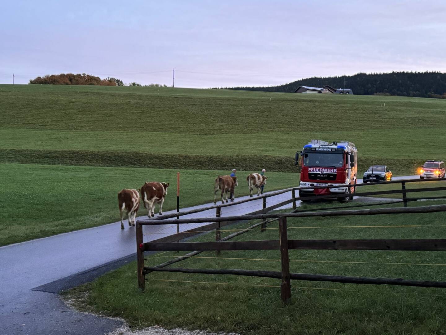 Kurz nach der erfolgreichen Suchaktion in Sankt Lorenz meldete ein Notrufer eine entlaufene Kuhherde im Ortsgebiet von Tiefgraben. Umgehend rückte die zuständige Feuerwehr Guggenberg von der positiv verlaufenen Personensuche ab und machte sich auf die Suche nach der Kuhherde. Nachdem die Kuhherde anfangs nicht zu finden war, wurde die Drohnengruppe erneut alarmiert, um bei der Suche zu unterstützen. Bereits auf der Anfahrt konnten die Drohnen wieder storniert werden, da die Herde in einer Wiese gesichtet wurde. Der Feuerwehr gelang es die Herde einzufangen und den Besitzer ausfindig zu machen.
