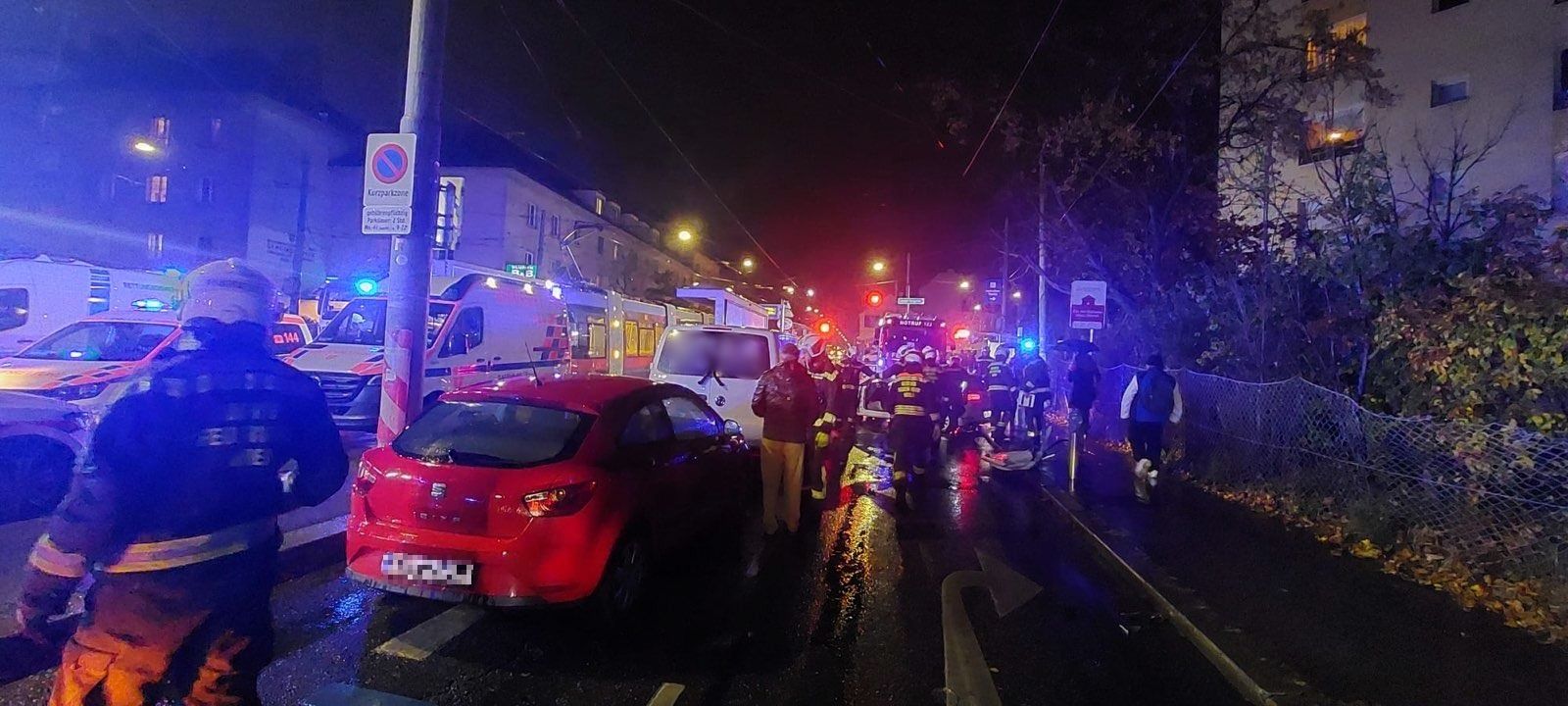 Aufgrund des Unfalles versammelte sich eine große Anzahl an Schaulustigen, weshalb von den Feuerwehrteams mit Unterlagsdecken ein Sichtschutz errichtet wurde.