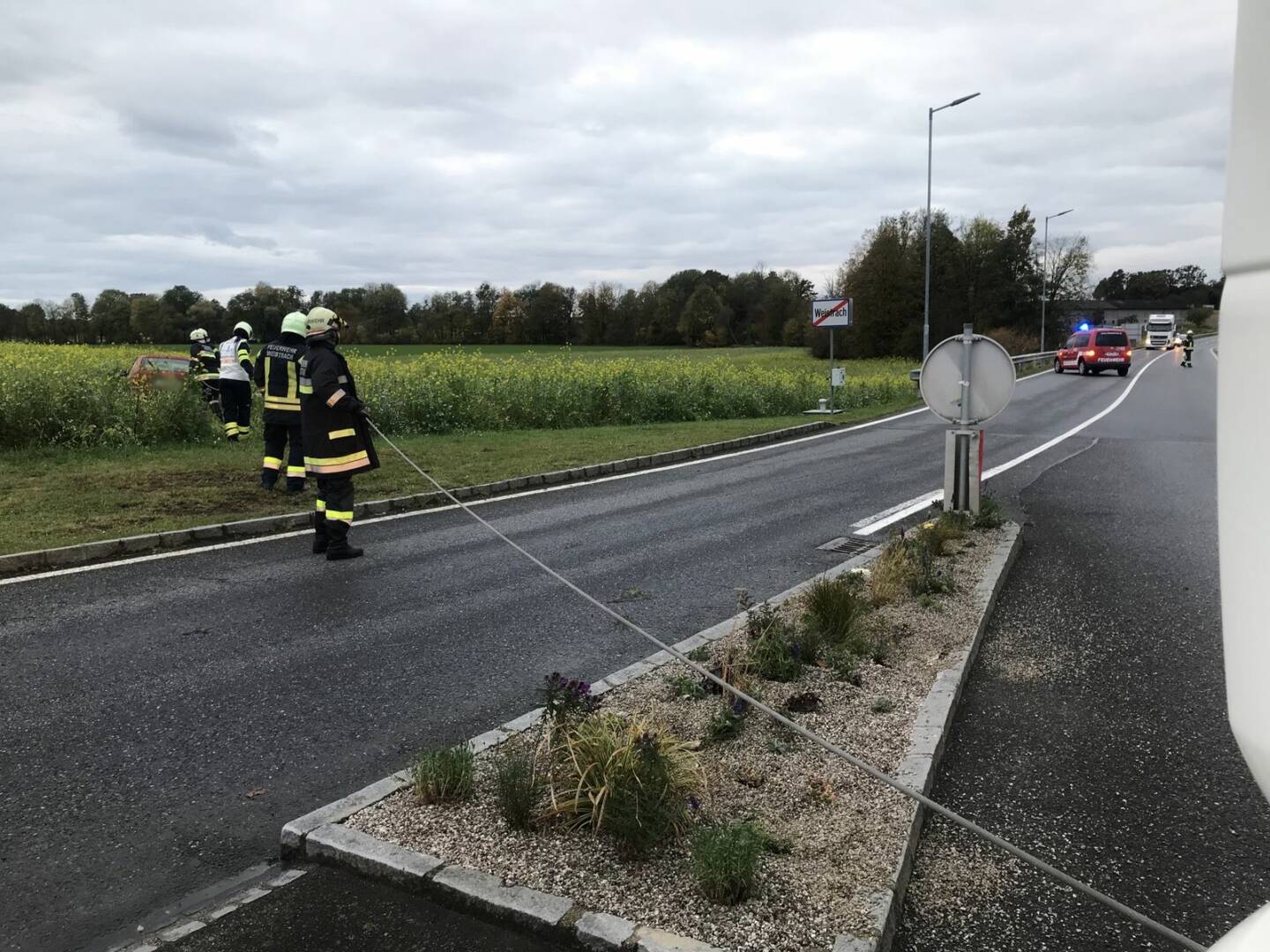 Ein junger Lenker wollte mit seinem Mazda 323 vom Ortszentrum kommend Richtung Rohrbach fahren. Dabei verlor er auf der nassen Straße die Kontrolle über den PKW und fuhr geradewegs über den Fahrbahnteiler in eine begrünte Ackerfläche. Der Lenker wie auch andere Verkehrsteilnehmer blieben zum Glück unverletzt.