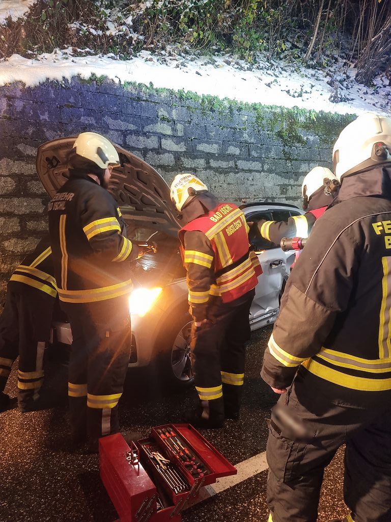 „Verkehrsunfall eingeklemmte Person, mehrere Personen im Fahrzeug“, mit diesem Alarmtext wurden am Sonntag Abend die Kameraden mittels Funkmeldeempfänger zum Einsatz alarmiert.