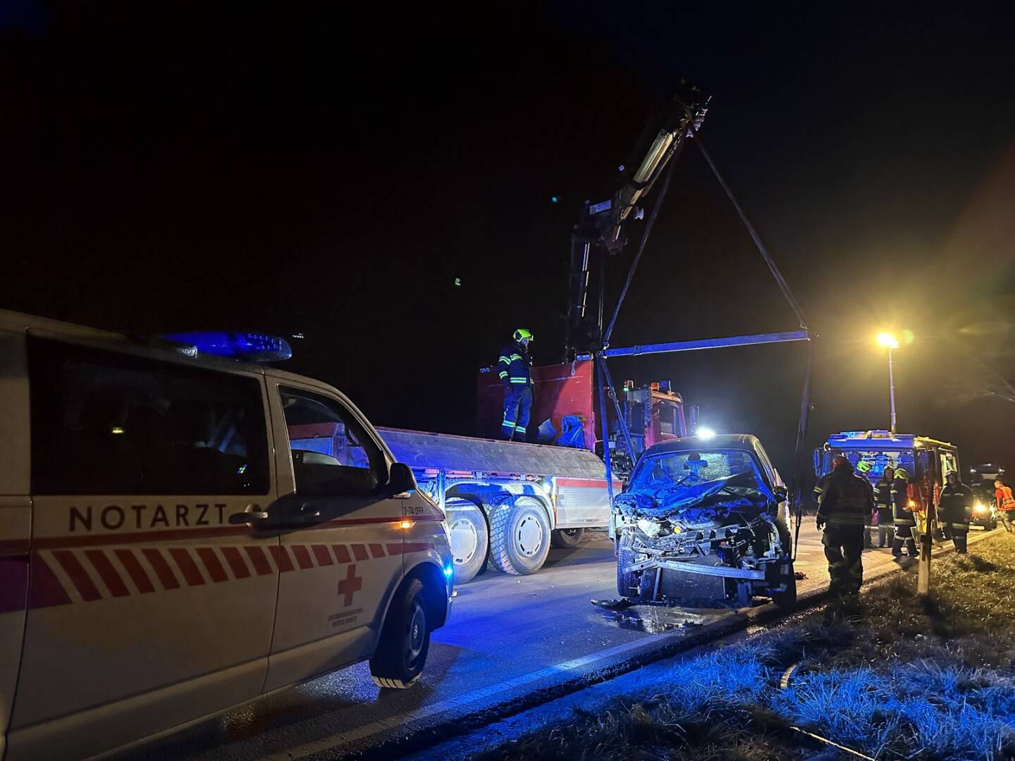 Am Abend des 11. Dezember krachte auf der L159 zwischen Ebenfurth und Haschendorf ein PKW in das Heck eines vor ihm fahrenden Traktor-Gespanns. Der PKW Lenker wurde dabei verletzt und nach notärztlicher Versorgung in ein Spital eingeliefert.