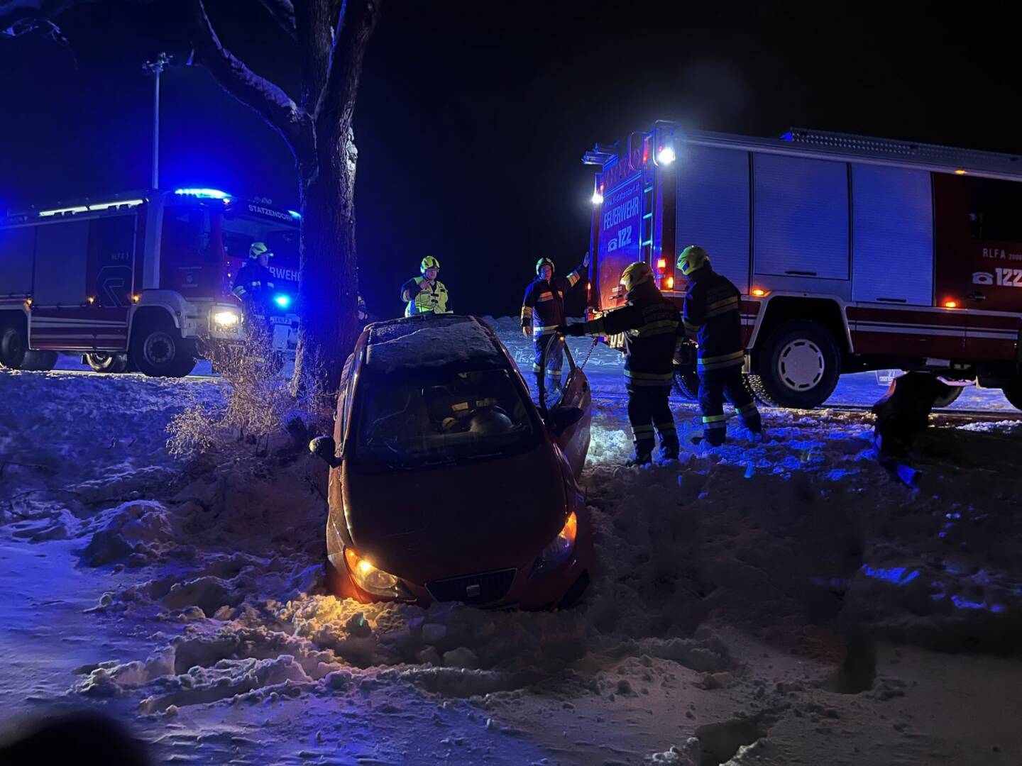 Die Feuerwehr Statzendorf wurde am Freitagabend zu einer Fahrzeugbergung in der Nähe des neuen Feuerwehrhauses gerufen. Aufgrund der winterlichen Fahrbahnverhältnisse kam der Lenker eines Kraftfahrzeuges von der L100 ab und landete im angrenzenden Acker.