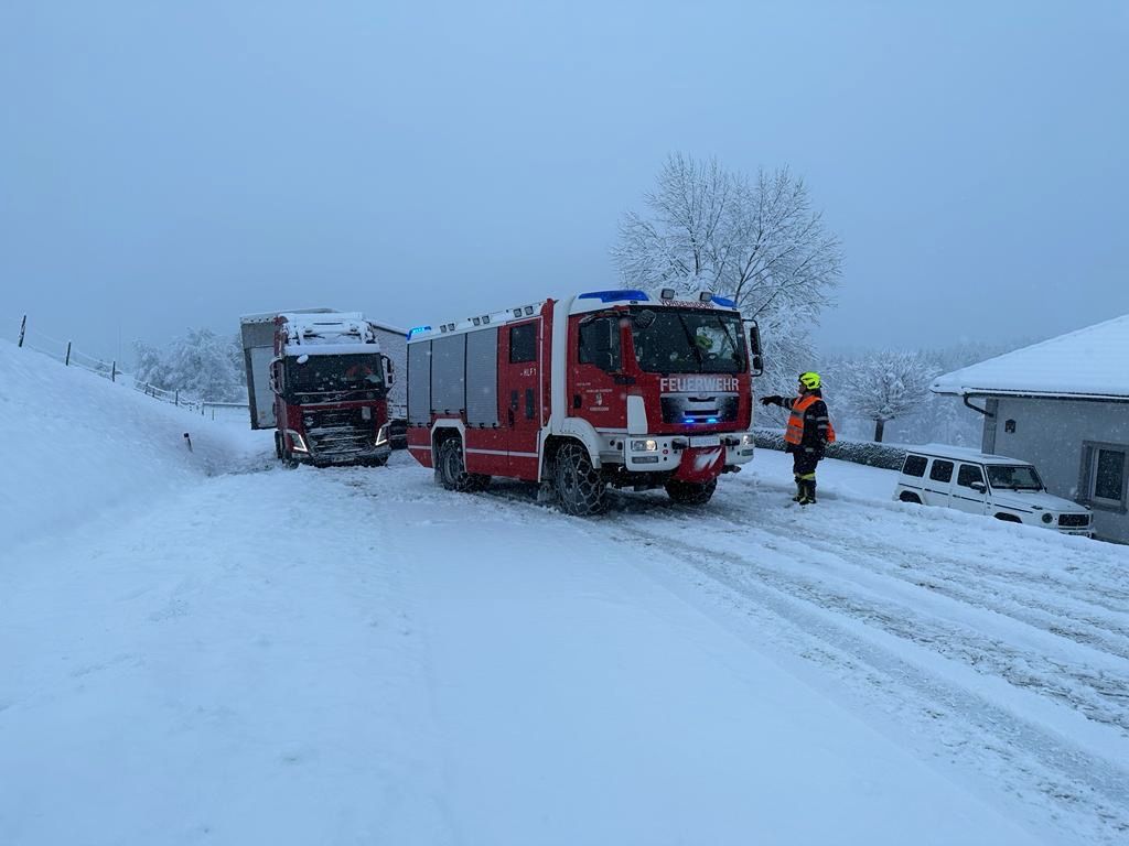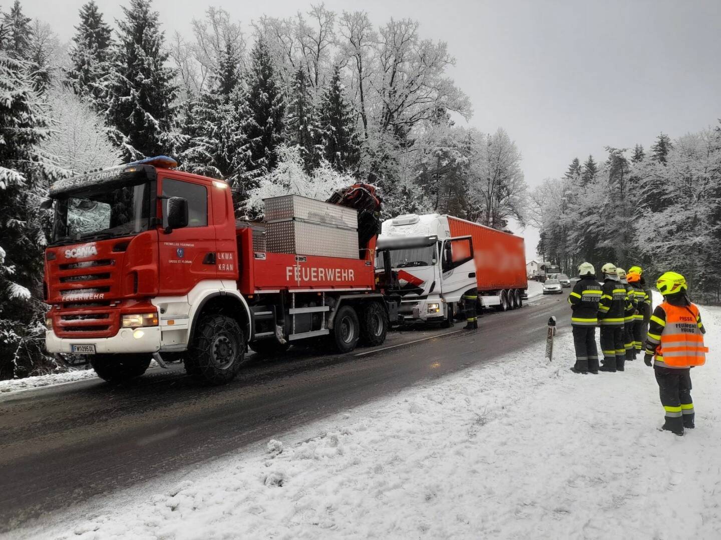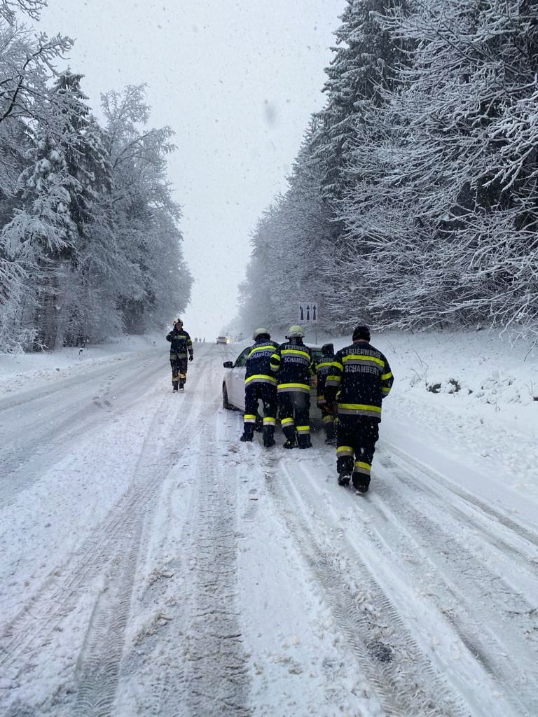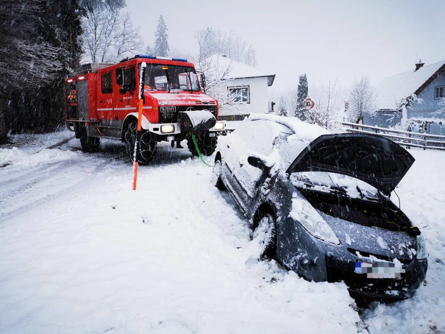 Durch den heftigen Schneefall heute Früh kam es auch im Bezirk Deutschlandsberg zu zahlreichen Feuerwehreinsätzen, wo Fahrzeuge von den Straßen abkamen oder hängen blieben bis hin zu Baumbergungen.