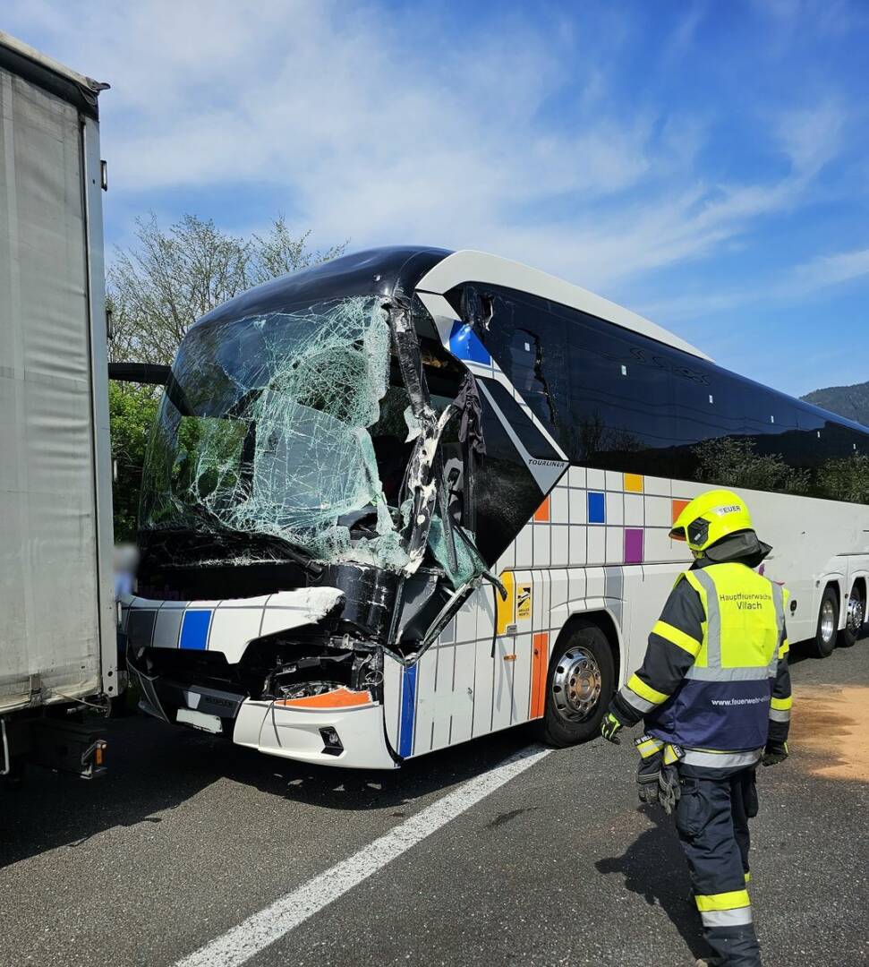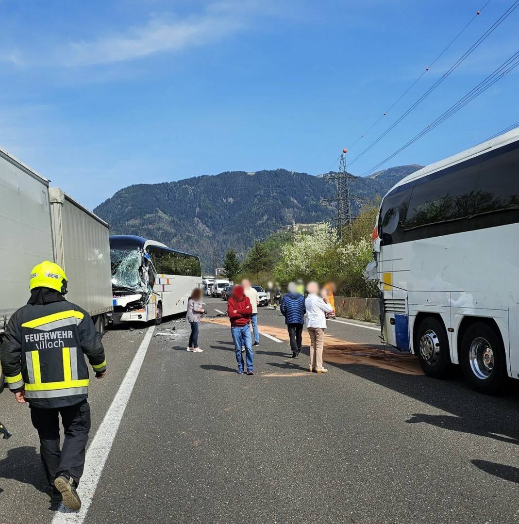 Vor Ort wurde festgestellt, dass ein Reisebus auf einen anderen aufgefahren war und fast noch zusätzlich einen LKW touchiert hätte, berichtet Einsatzleiter OBI Martin Regenfelder, Kommandant Stellvertreter der Hauptfeuerwache Villach. Glücklicherweise waren keine Personen eingeklemmt. Alle Insassen konnten die Busse selbständig verlassen.