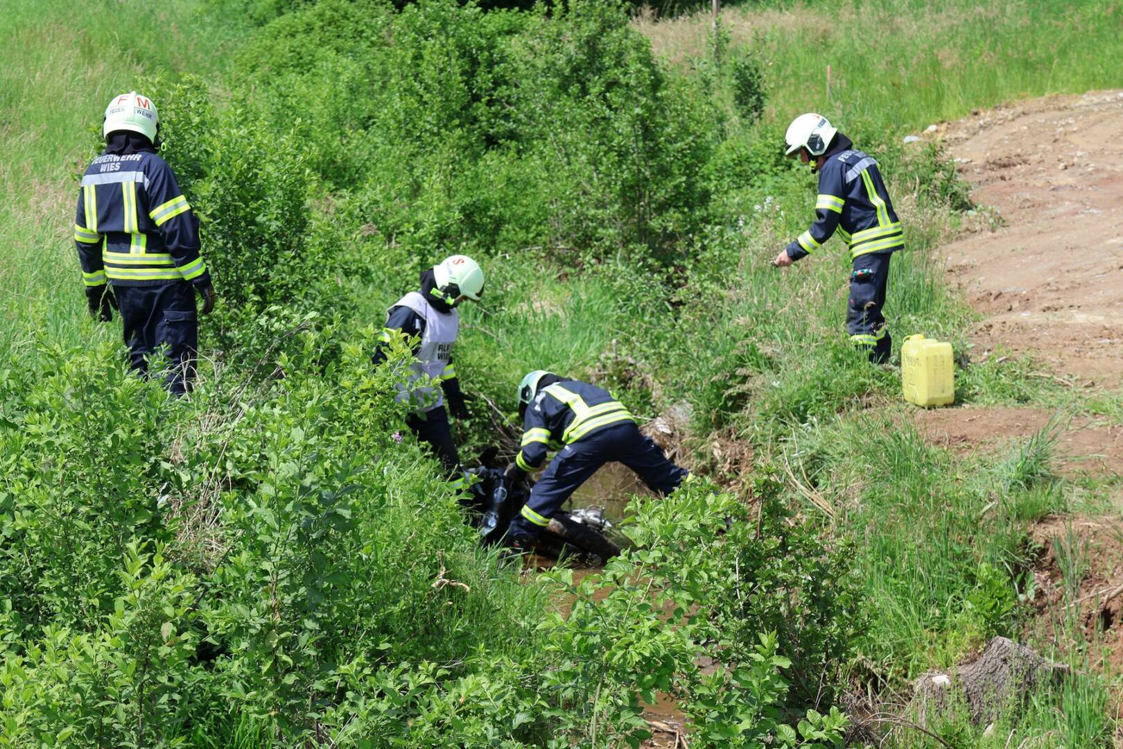 Die Aufgabe der Feuerwehr Wies bestand in der Unterstützung des Rettungsdienstes sowie der Verkehrsregelung. Im Anschluss wurde das Motorrad mittels Seilwinde geborgen und ausgeflossene Betriebsstoffe gebunden.