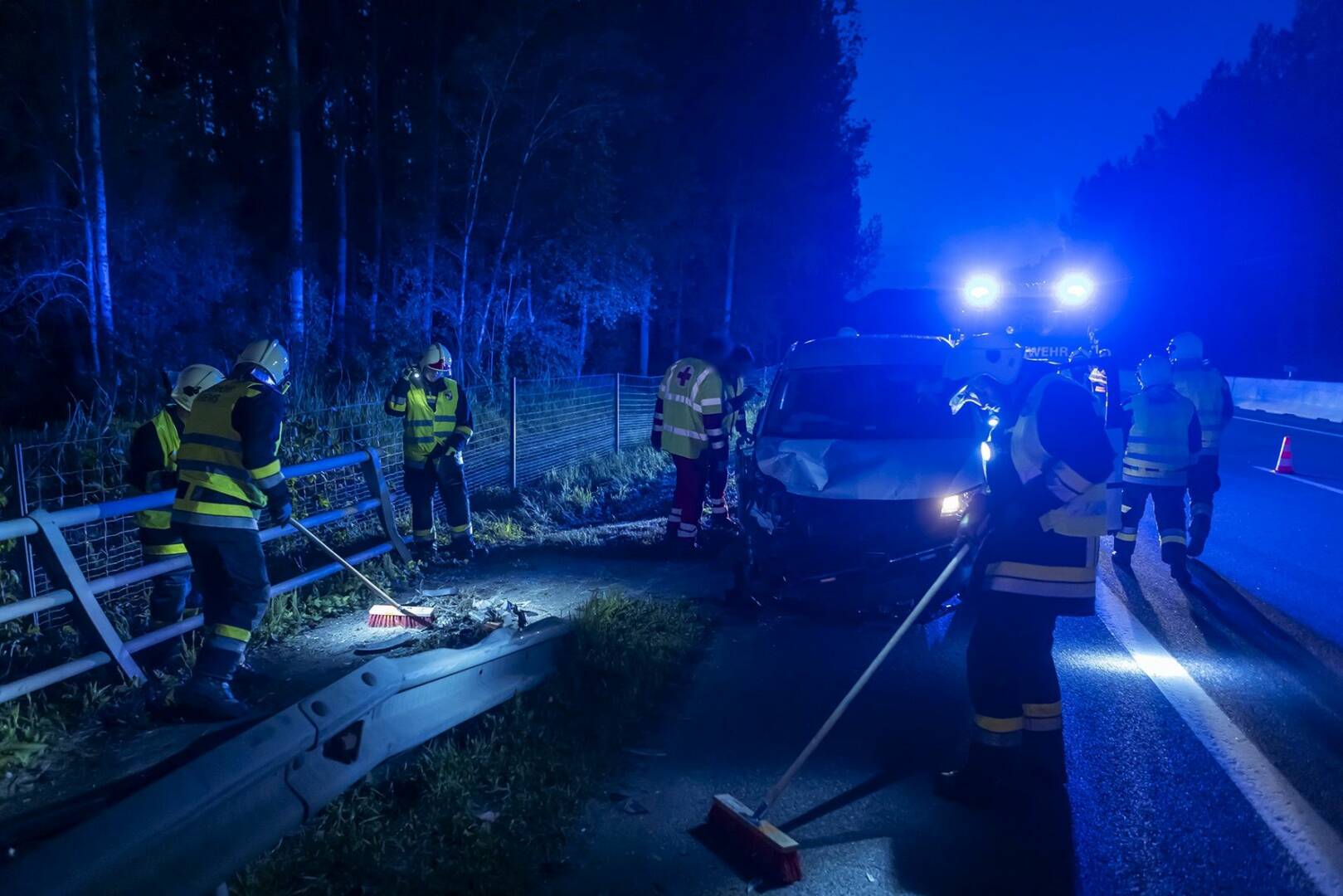 Anschließend erfolgte eine zügige Reinigung der Fahrbahn. Betriebsmittel wurden gebunden, Wrackteile, die auf der gesamten Fahrbahnbreite verstreut waren, wurden eingesammelt, und die total zerstörte Pannenbucht wurde so weit wie möglich aufgeräumt, um für den vorbeifahrenden Verkehr keine Gefahr mehr darzustellen. Nach über eineinhalb Stunden konnten die Einsatzkräfte die Unfallstelle verlassen, das demolierte Fahrzeug gesichert abstellen und in ihre Wachen einrücken.