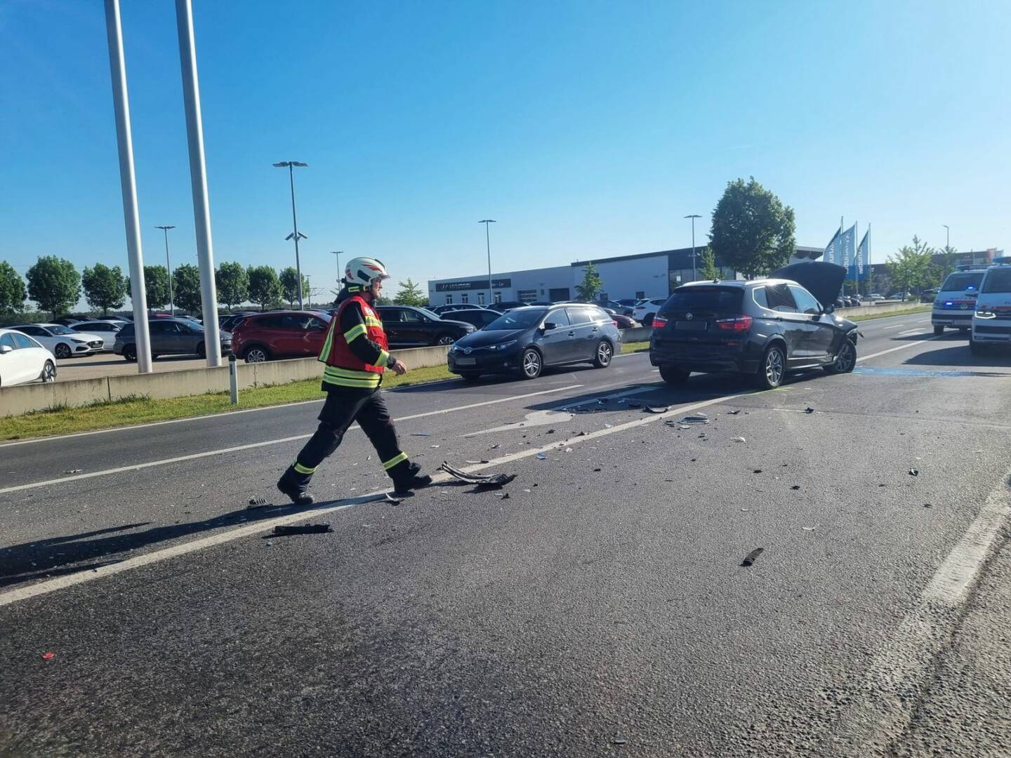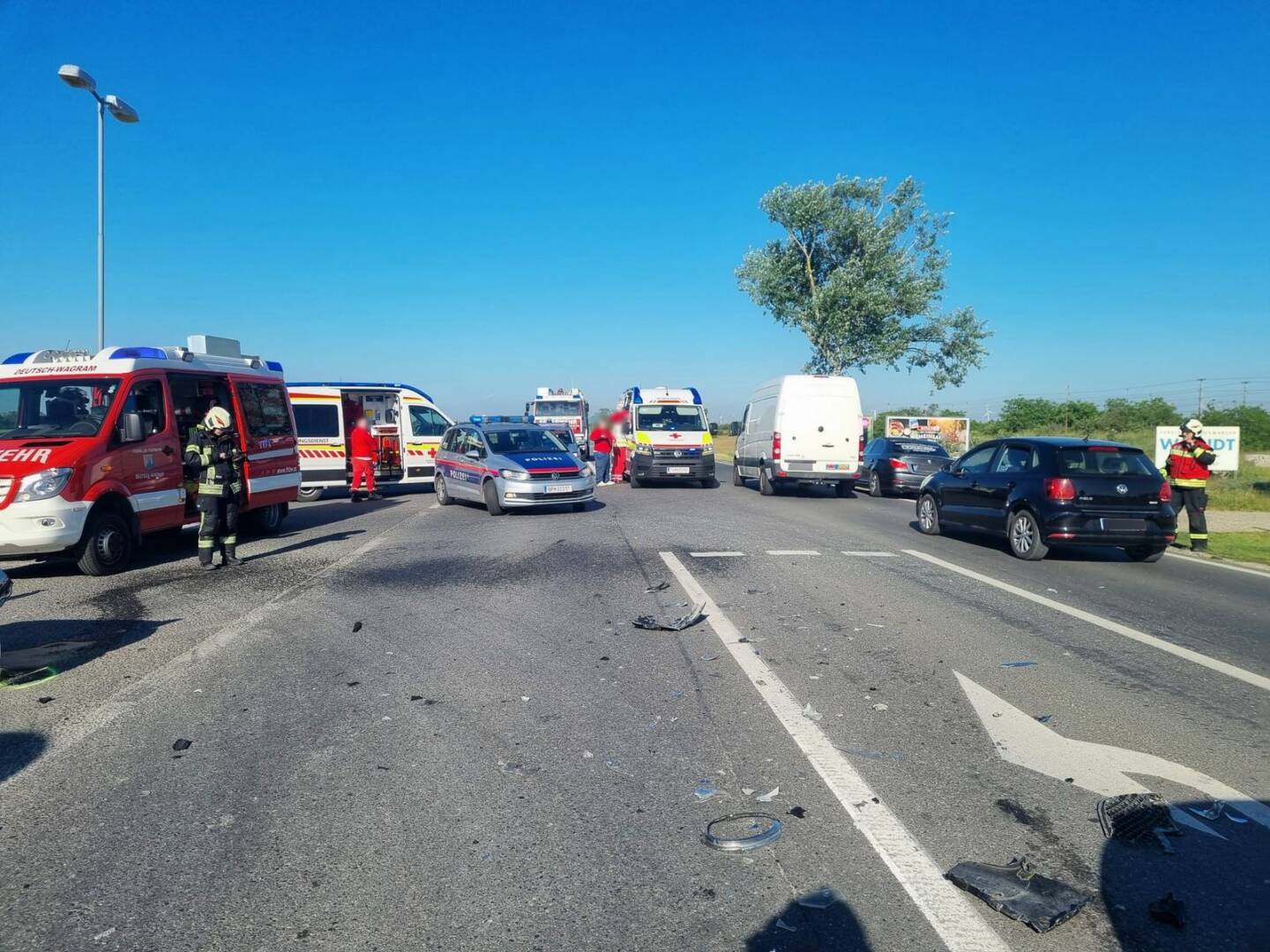 Zum bereits vierten Einsatz innerhalb von 24 Stunden wurden die Einsatzkräfte der Feuerwehren Strasshof und Deutsch-Wagram in den Morgenstunden des 14. Mai 2024 um 08:04 Uhr auf die B8 Höhe Kilometer 21.2 alarmiert. Aus bisher ungeklärter Ursache kam es zu einem Zusammenstoß von zwei Fahrzeugen, bei dem insgesamt 4 Fahrzeuginsassen – darunter 2 Kinder – verletzt wurden.
