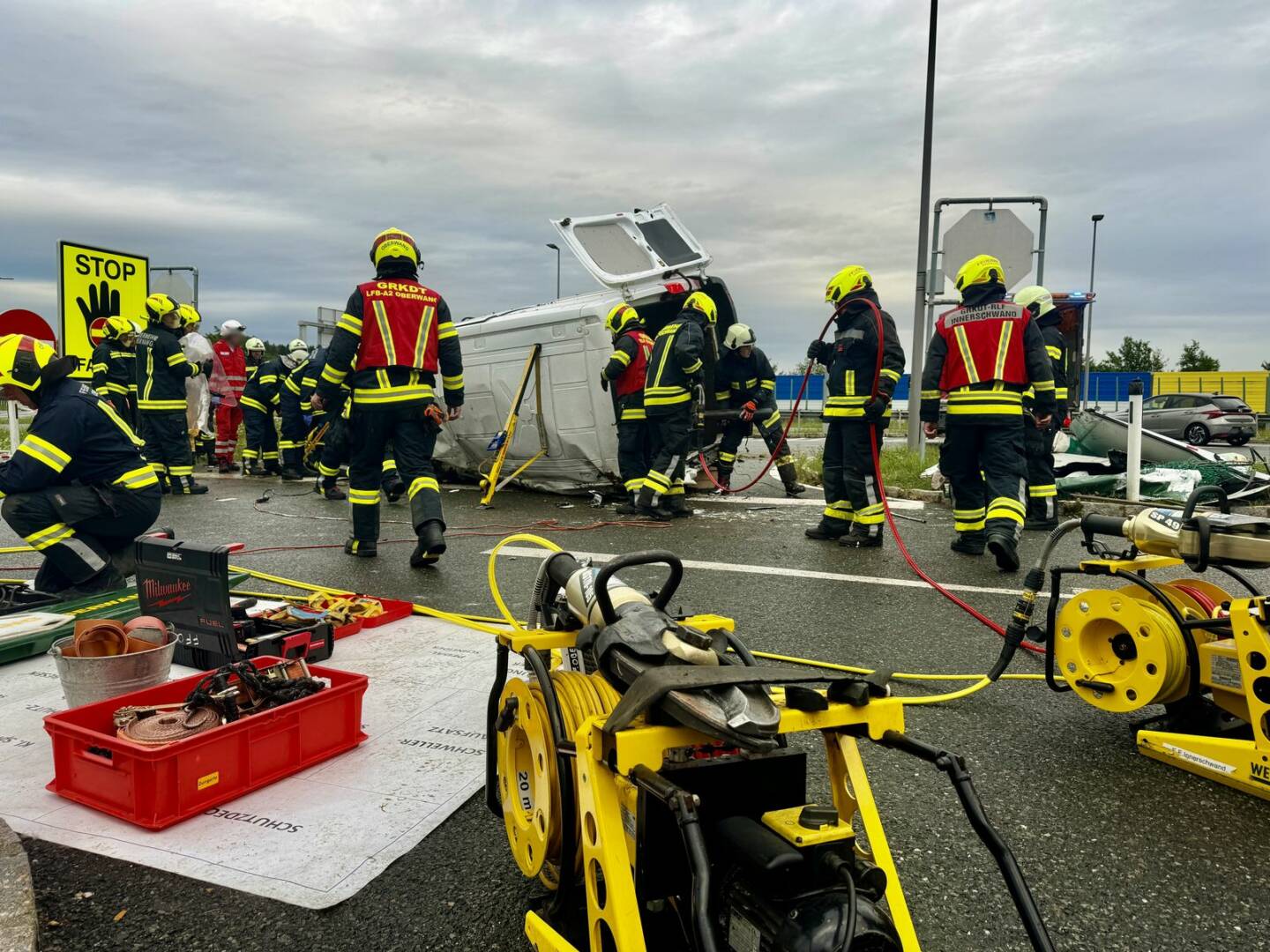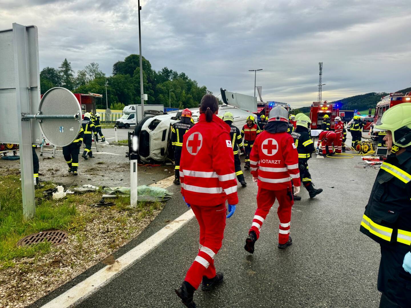 Die Unfalllenkerin wurde von den Einsatzkräften mit technischem Bergegerät aus dem Unfallfahrzeug geschnitten. Der anwesende Notarzt konnte nur mehr den Tod feststellen. Im Einsatz standen 72 Einsatzkräfte von Feuerwehr, Rotem Kreuz und Polizei.