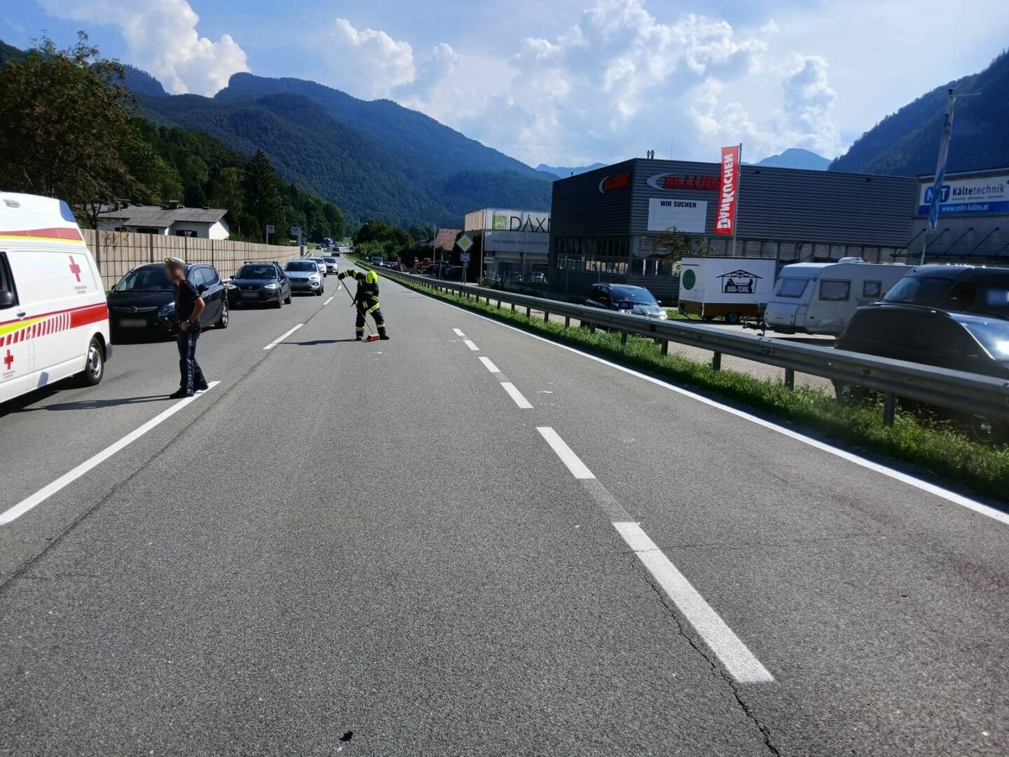 Die Kameraden der Feuerwache Sulzbach säuberten die Fahrbahn und entsorgten die Glasscherben. Eine Sektorstreife der Bundespolizei Bad Ischl hielt den Verkehr wechselweise an und nach ca. 30 Min. konnte der Einsatz wieder beendet werden.