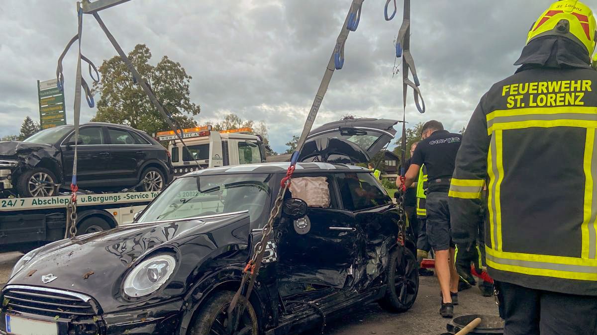 Am Montag, den 9. September 2024, wurde die Freiwillige Feuerwehr Sankt Lorenz um 14.31 Uhr zu einem schweren Verkehrsunfall auf die B154 Mondsee Straße Höhe Ausfahrt Golfplatz alarmiert. Ein Lenker war mit seinem PKW von einer Seitenstraße auf die Bundesstraße gefahren und übersah dabei einen aus Mondsee kommenden anderen PKW.