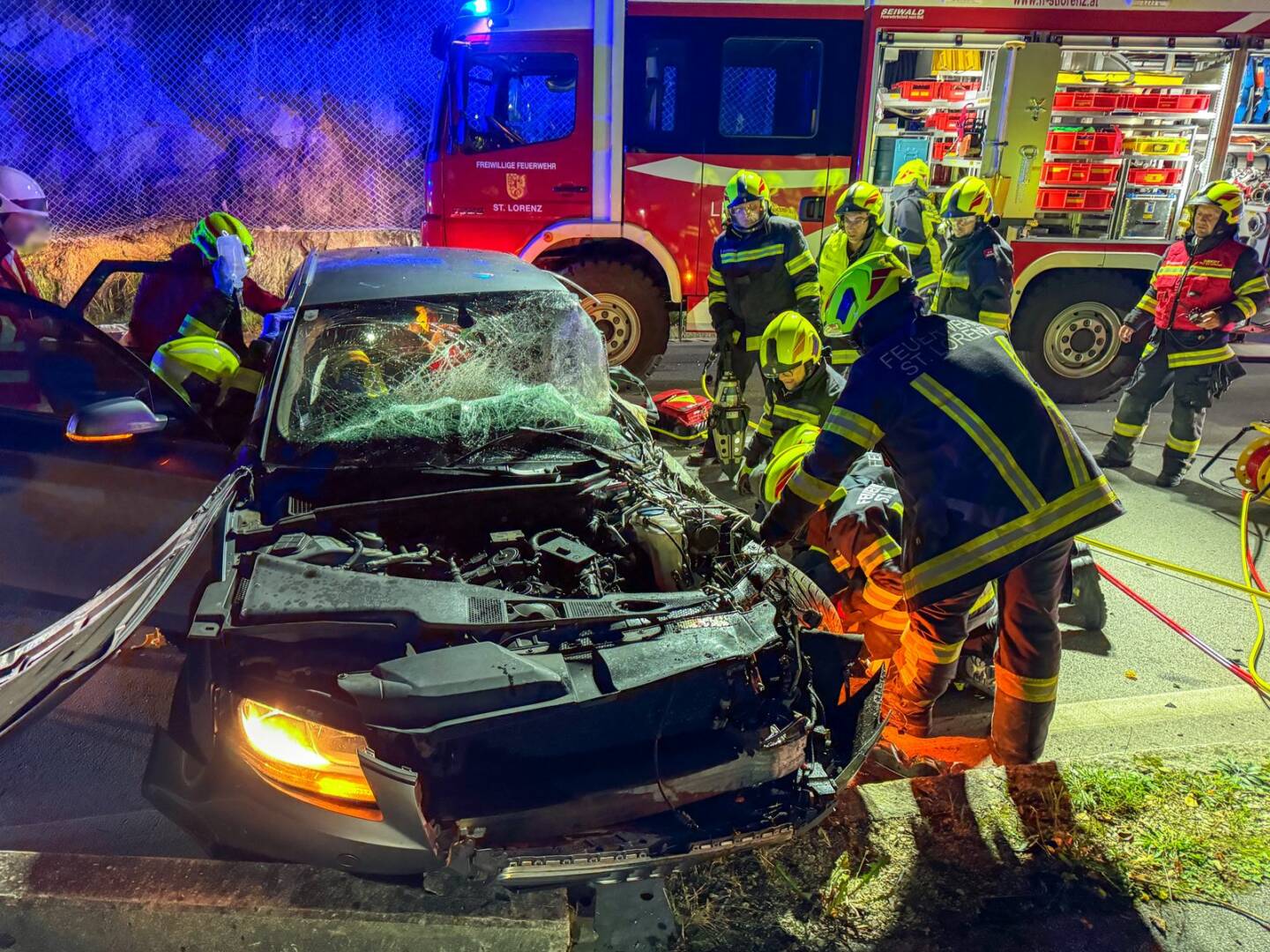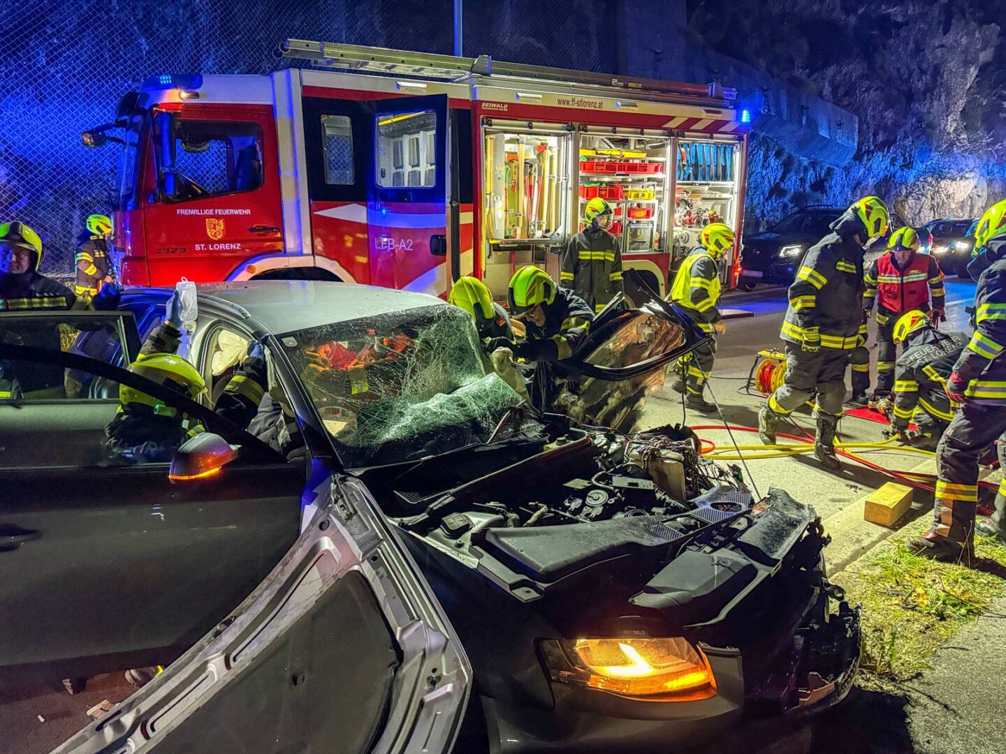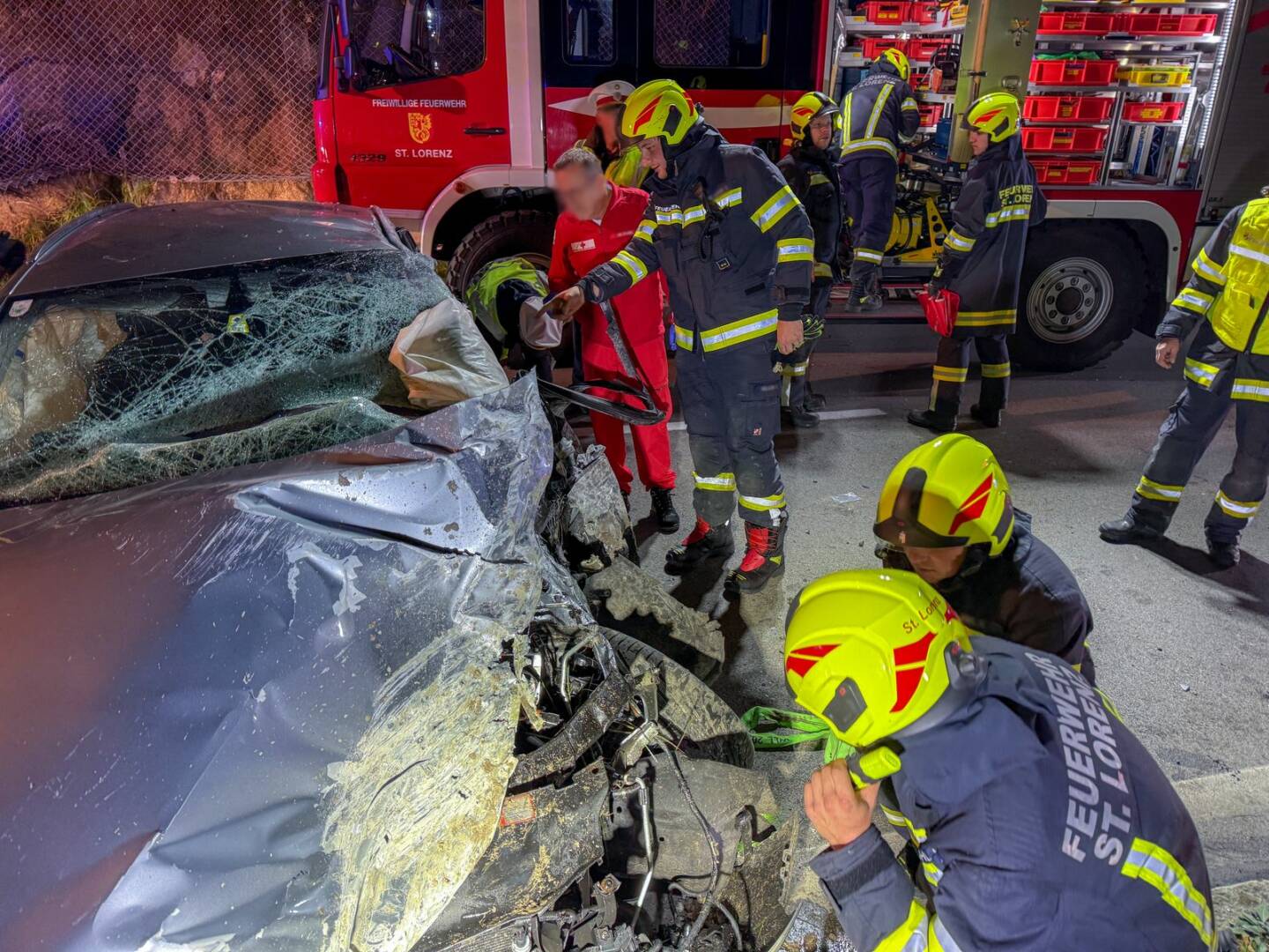 Die Feuerwehren Sankt Lorenz und Au-See standen mit 40 Personen im Rettungseinsatz. Insgesamt waren knapp 60 Einsatzkräfte von Polizei, Rotem Kreuz und Feuerwehr zwei Stunden im Einsatz.