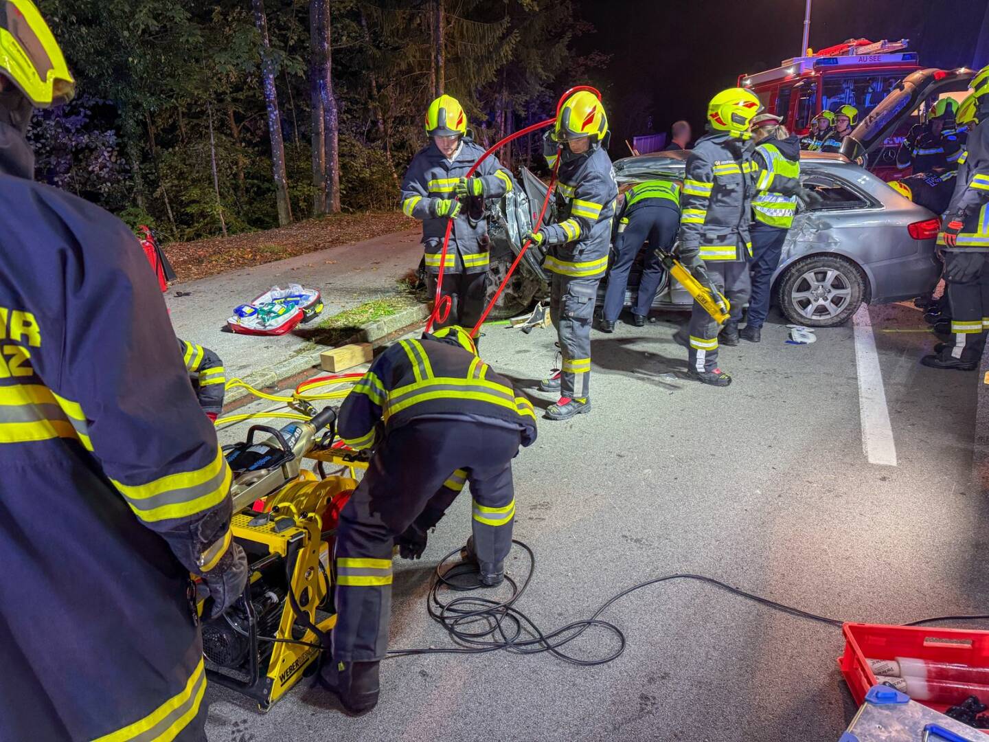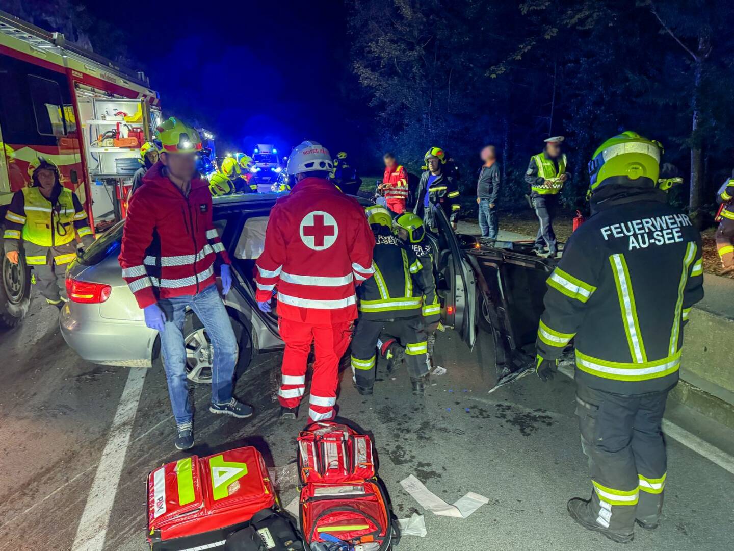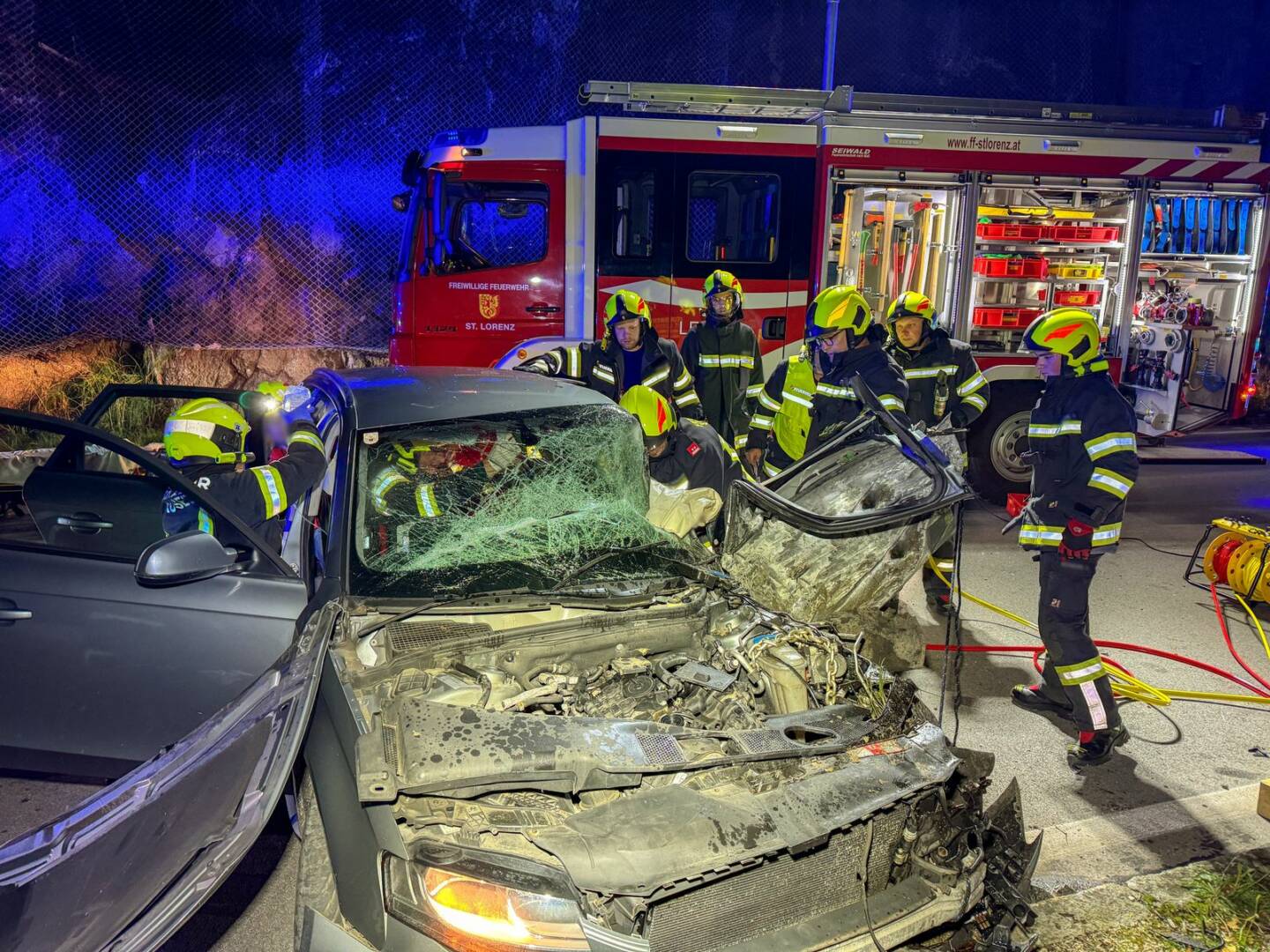 Die Feuerwehren Sankt Lorenz und Au-See standen mit 40 Personen im Rettungseinsatz. Insgesamt waren knapp 60 Einsatzkräfte von Polizei, Rotem Kreuz und Feuerwehr zwei Stunden im Einsatz.