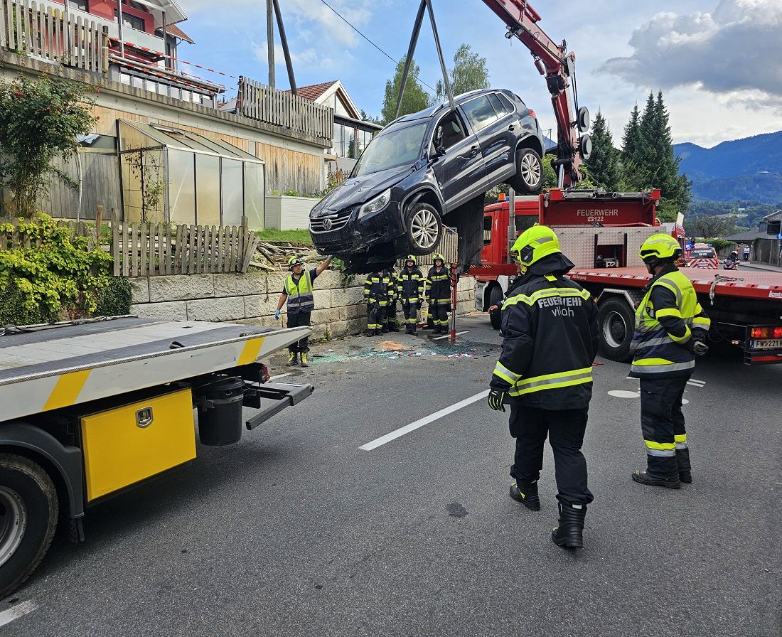 Der ältere Mann wurde vom Notarzt erstversorgt und anschließend vom Roten Kreuz mit Verletzungen unbestimmten Grades ins LKH Villach eingeliefert. Im Auftrag der Polizei wurde der PKW mittels Kranfahrzeug der Hauptfeuerwache umgedreht und direkt auf die Ladefläche eines privaten Abschleppdienstes gehoben.