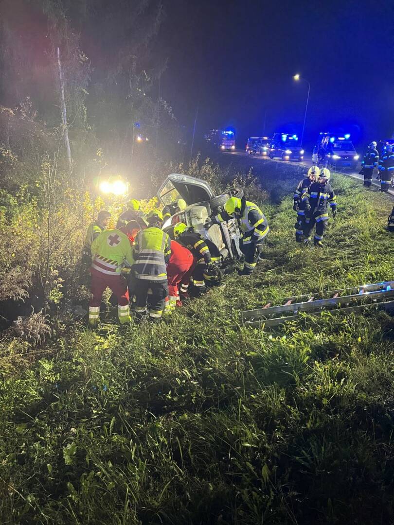 Zur Menschenrettung bei einem Verkehrsunfall mit eingeklemmter Person wurden die Hauptfeuerwache Villach und die Feuerwehr Perau kurz vor Mitternacht am 25. Oktober 2024 alarmiert. Ein PKW war von der Fahrbahn abgekommen, hatte sich überschlagen und war etwa zwei Meter unterhalb des Straßenniveaus auf der Fahrerseite zum Liegen gekommen.