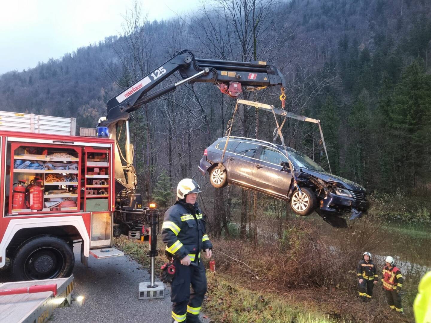 Beim Eintreffen der FF Bad Ischl wurde das Fahrzeug mittels Kran geborgen und von einem Abschleppunternehmen abtransportiert.