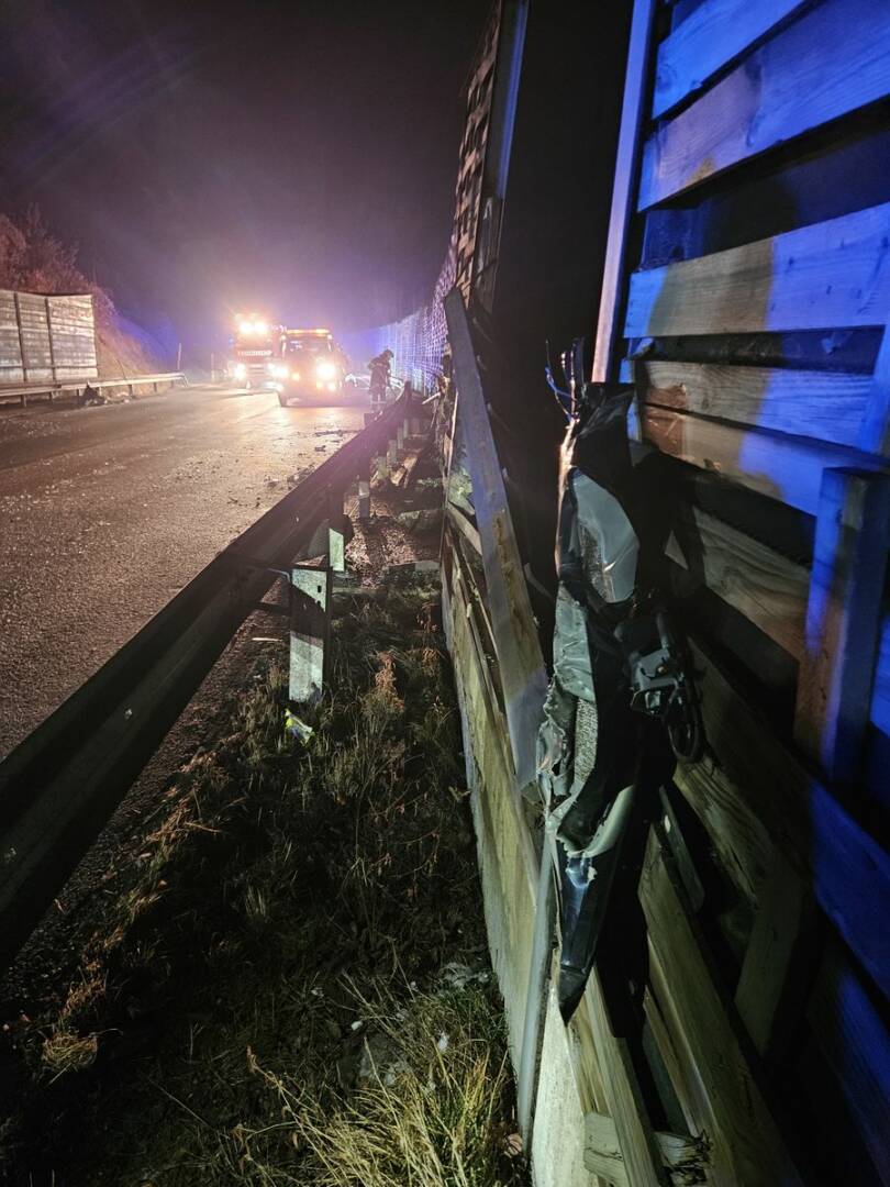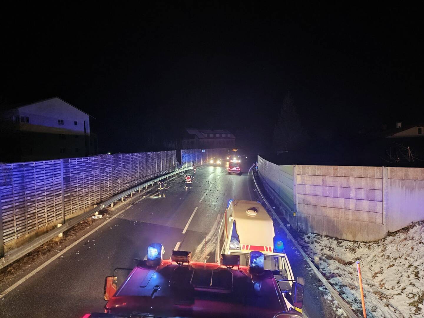 Ein Lenker geriet mit seinem PKW auf der B145 in einer Kurve auf die Leitplanke und darauffolgend gegen die Lärmschutzwand. Nachdem das Fahrzeug nach ca. 200 Metern schwer beschädigt auf der gegenüberliegenden Straßenseite zum Stillstand kam, glich die Fahrbahn einem Trümmerfeld. Metallteile steckten in der Lärmschutzwand und ein Element der Wand wurde förmlich aus der Verankerung gerissen. Wie durch ein Wunder blieb der Fahrer bei dem schweren Crash nahezu unverletzt.
