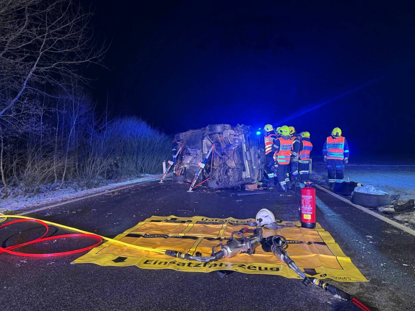 Zu einem schweren Verkehrsunfall kam es in der vergangenen Nacht zwischen Gmünd und Nondorf. Ein 21-Jähriger kam aus bisher unbekannten Gründen von der Fahrbahn ab und kollidierte mit einer Feldzufahrt. Durch die Wucht des Aufpralls überschlug sich das Fahrzeug mehrfach und blieb stark beschädigt, seitlich auf der Fahrbahn liegen.