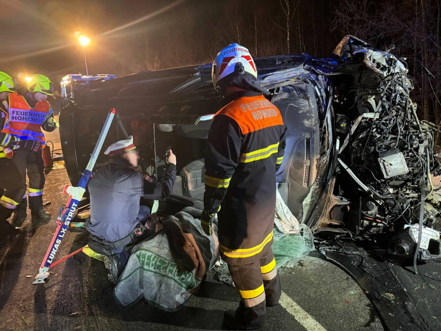 Der Fahrer wurde unbestimmten Grades verletzt und im Fahrzeug eingeschlossen. Die ersteintreffende Feuerwehr Nondorf baute einen Brandschutz auf und verschaffte sich Zugang zum Fahrer, um eine medizinische Erstversorgung durchzuführen. Die ebenfalls alarmierten Feuerwehren Hoheneich und Stadt Gmünd sicherten das Unfallfahrzeug weiter ab und retteten den verletzten Lenker durch den Einsatz von hydraulischen Rettungsgeräten und einer Säbelsäge. Innerhalb kürzester Zeit konnte der junge Mann gerettet und an den Rettungsdienst übergeben werden.