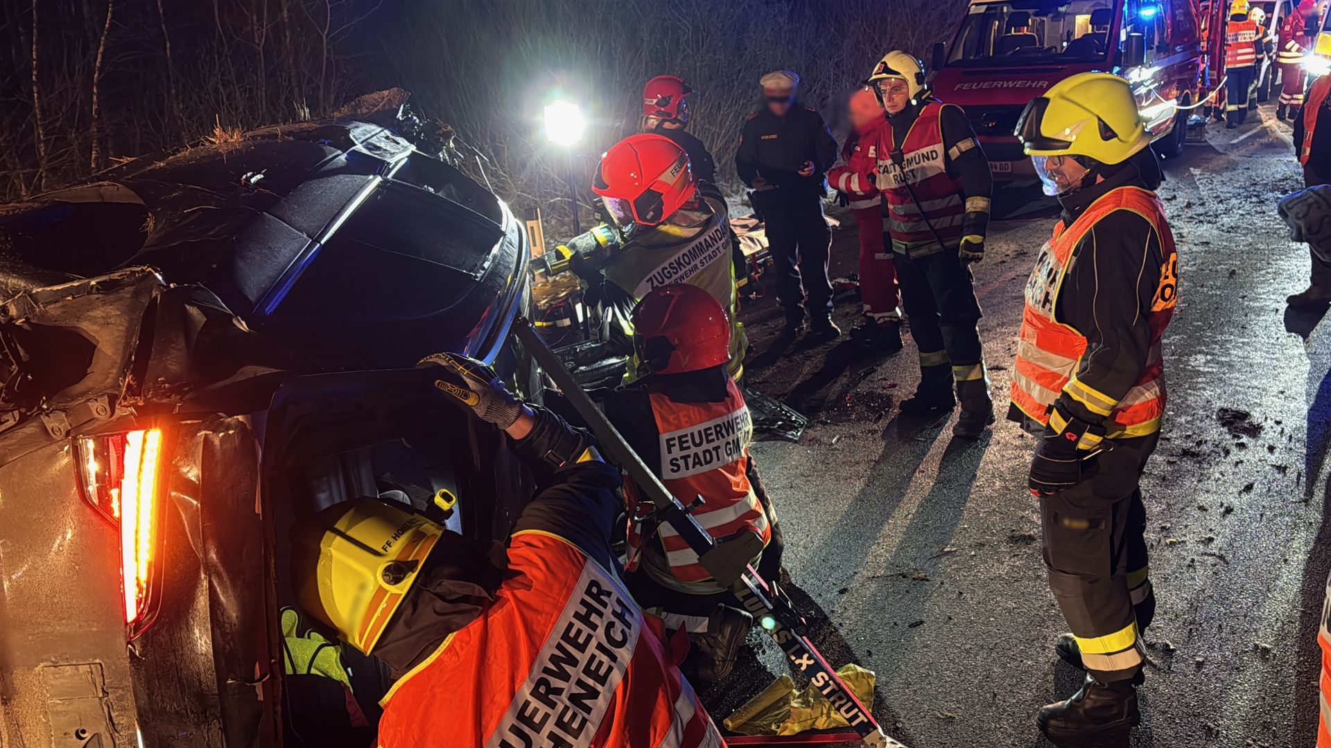 Feuerwehren befreien verletzten Lenker aus Unfallfahrzeug