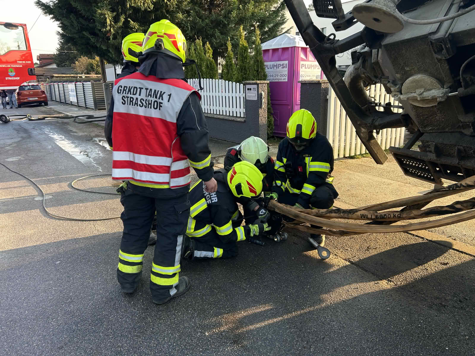 Im Einsatz standen: Tank 1, Tank 3, das Kommandofahrzeug, ein Mannschaftstransportfahrzeug und das Kommandantenfahrzeug mit 23 Einsatzkräften sowie die Polizei, der Störungsdienst der EVN und die Stadtgemeinde Strasshof.