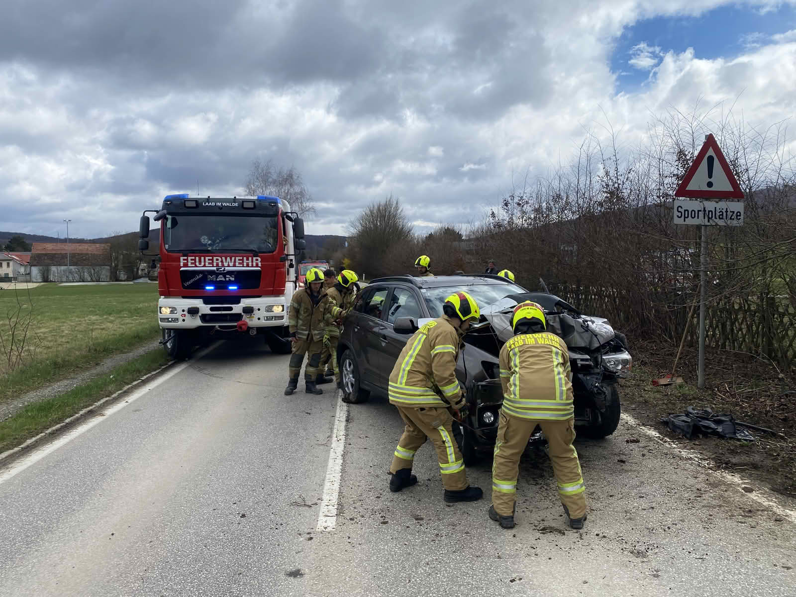 Um die Mittagszeit wurde die Feuerwehr Laab heute zu einem Verkehrsunfall alarmiert. Ein Pkw war aus unbekannter Ursache auf die Gegenfahrbahn geraten und gegen die Bäume am Fahrbahnrand geprallt.