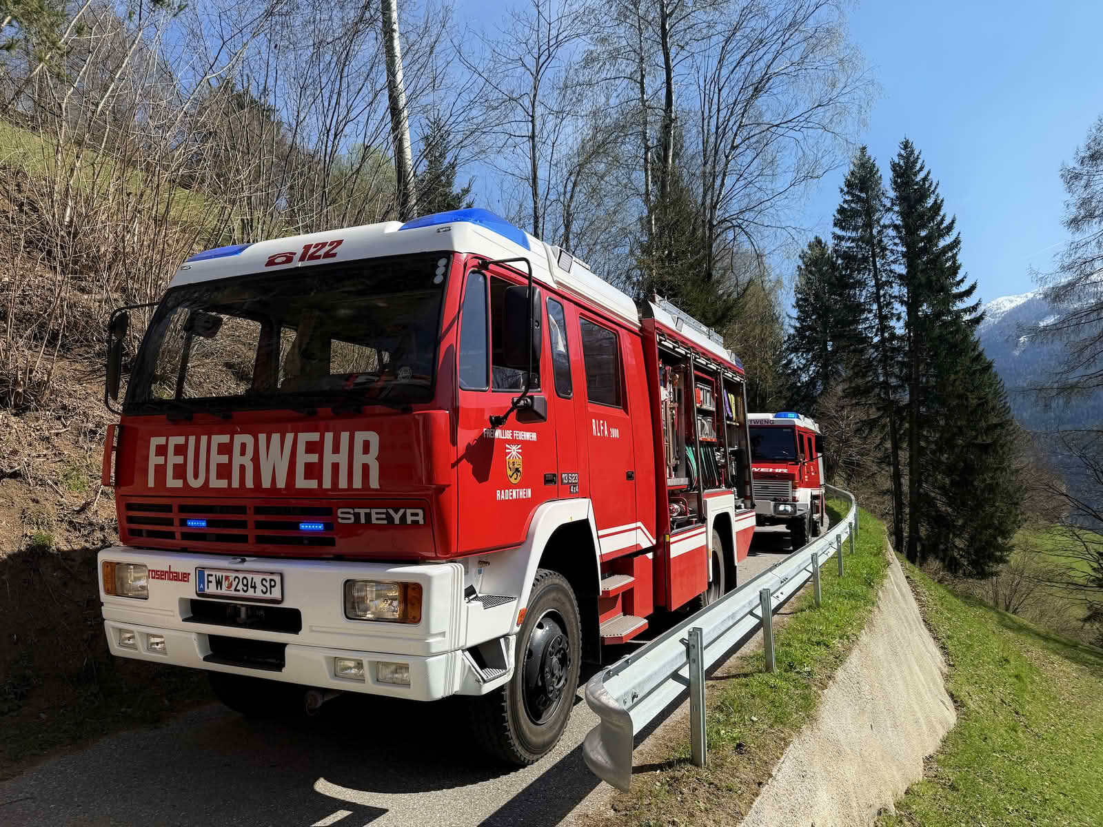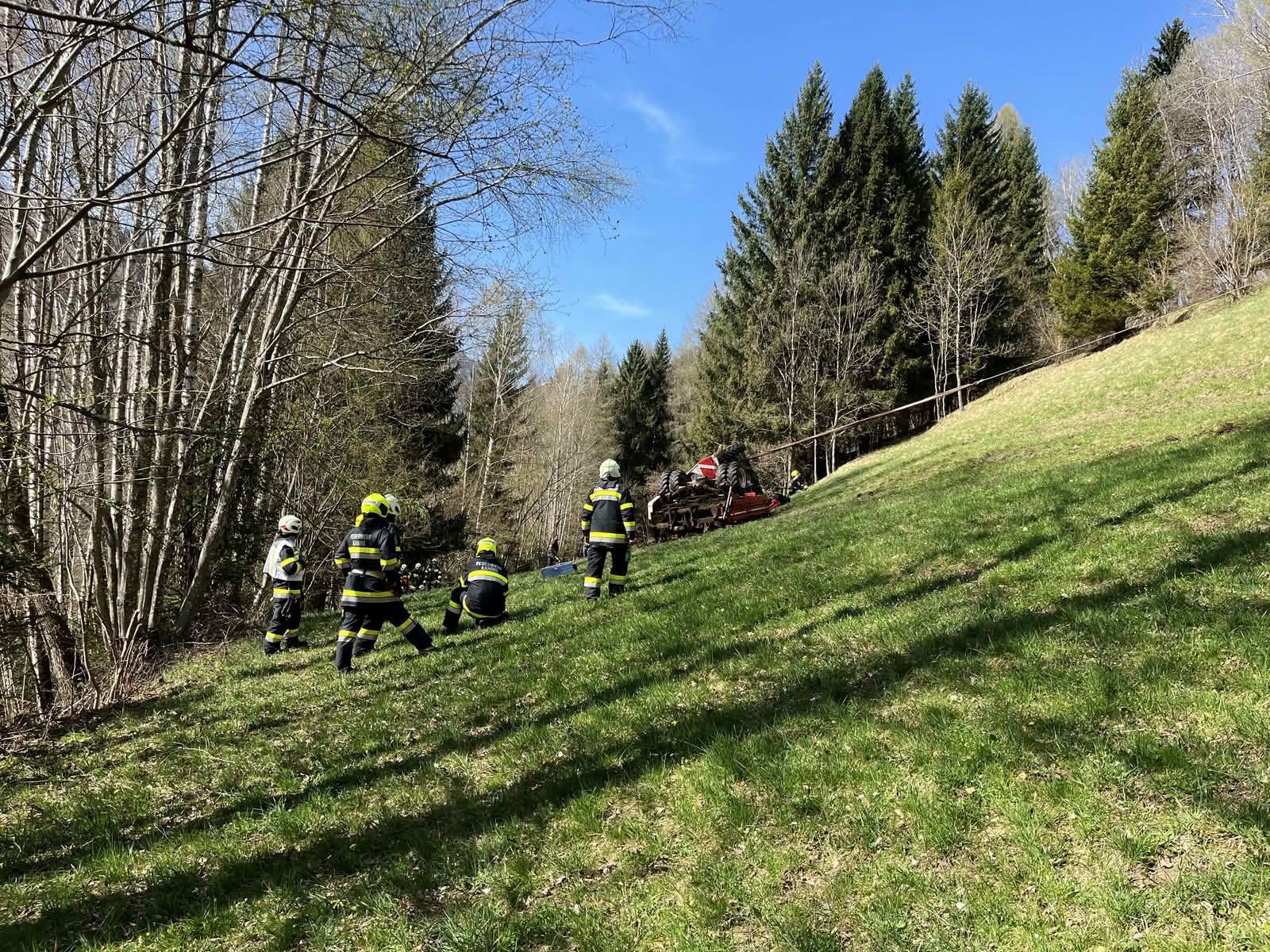 Am Samstag, dem 12. April 2025, wurden gegen 15 Uhr die Feuerwehren Kaning, Radenthein, Untertweng und Bad Kleinkirchheim zu einem Fahrzeugabsturz auf einer Wiese nahe der L18 Kaninger Straße im Bereich Schrott alarmiert. Ein landwirtschaftliches Fahrzeug war aus bislang unbekannter Ursache im steilen Gelände abgestürzt und hatte sich dabei überschlagen. Die Lenkerin wurde im Fahrzeug eingeklemmt.
