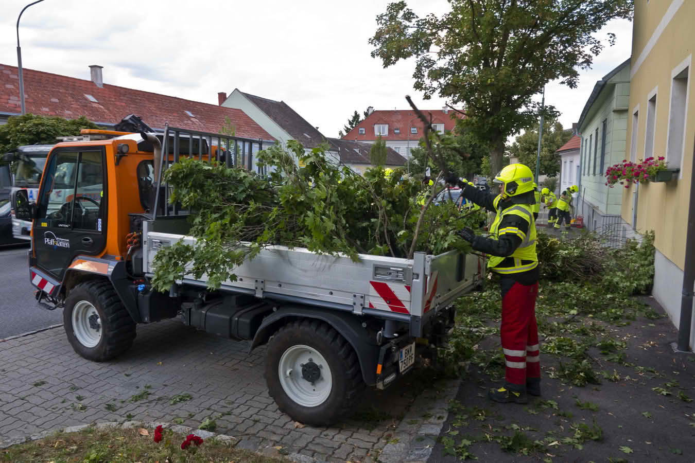 Nach deren Abtransport mit dem Rettungstransportwagen und Abflug des Notarzthubschraubers begannen die Aufräumarbeiten durch die Feuerwehreinsatzkräfte der FF Pfaffstätten. Betriebsmittel mussten gebunden, der Unfallwagen geborgen und am Fahrbahnrand abgestellt werden, der mitgerissene Baum zerschnitten und mit Unterstützung der Gemeinde gleich abtransportiert.