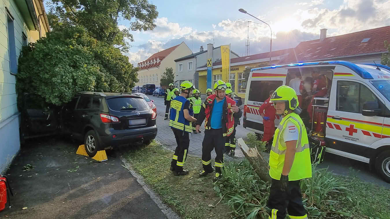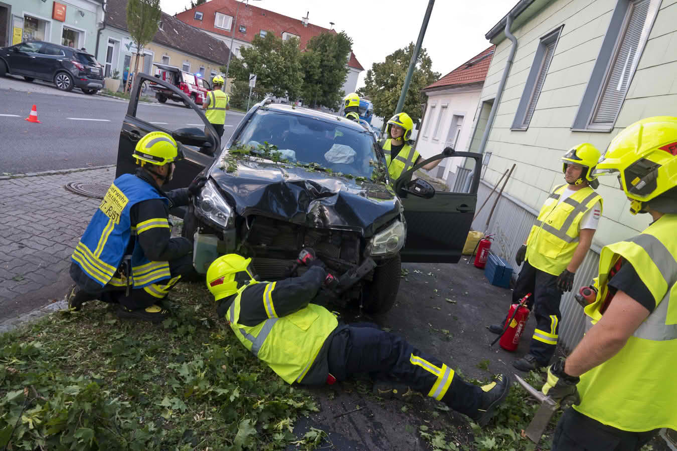 Am Freitag dem 22. August 2025 wurde kurz nach 18 Uhr die Freiwillige Feuerwehr Pfaffstätten und FF Tribuswinkel zu einer Menschenrettung nach Verkehrsunfall mit dem Zusatz „Baum auf PKW“ alarmiert.