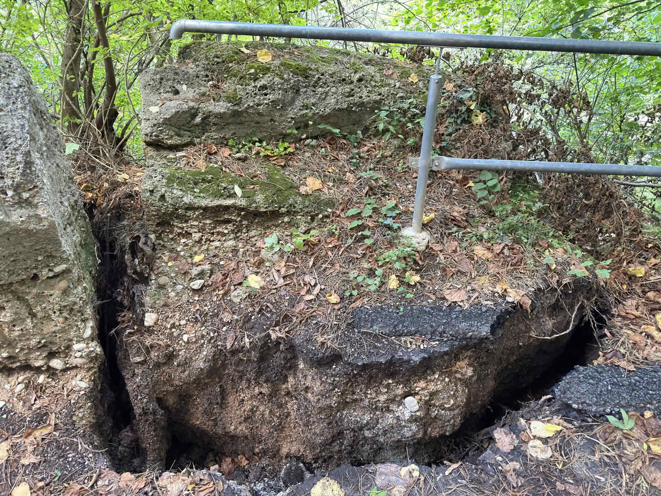 Am Donnerstag, dem 11. September 2025, entdeckte ein aufmerksamer Radfahrer auf dem sogenannten „Waldweg“ zwischen Berndorf und Pottenstein einen bedenklichen Spalt zwischen dem Wegesrand und einem deutlich abgesenkten Felsen. Er informierte umgehend die zuständige Behörde der Stadtgemeinde Berndorf.