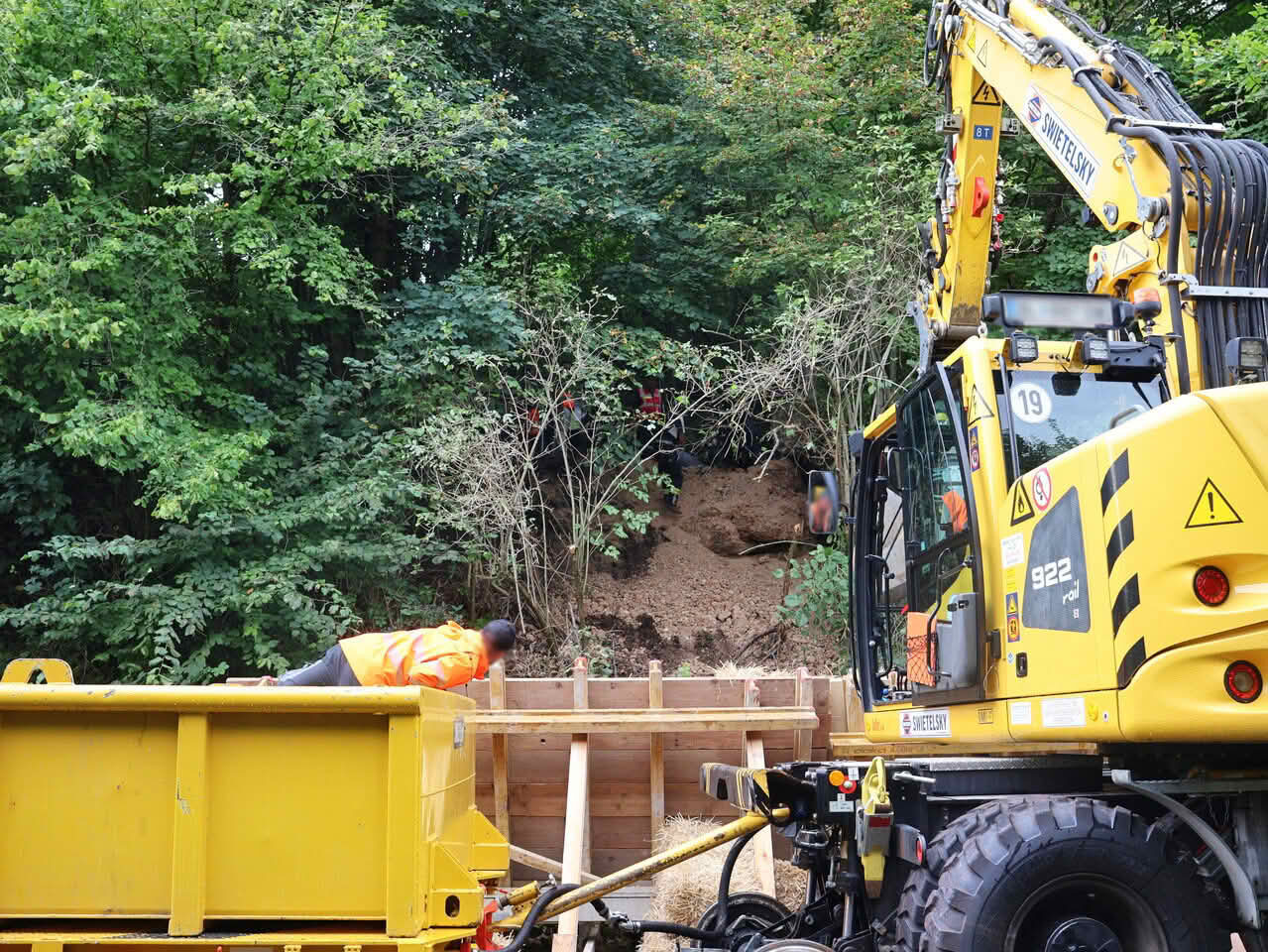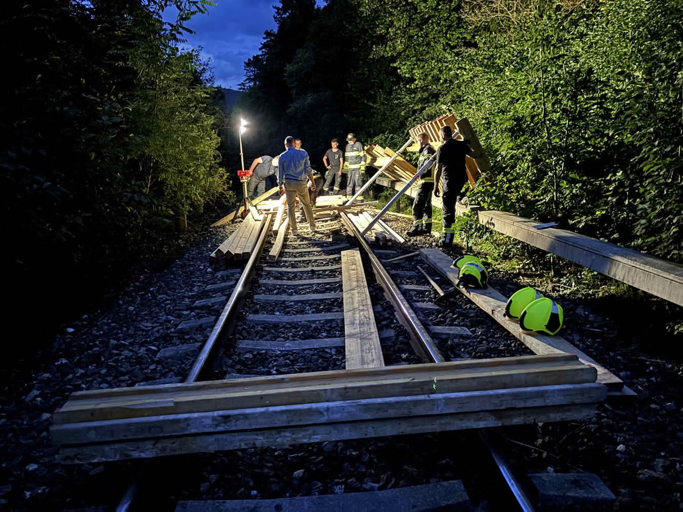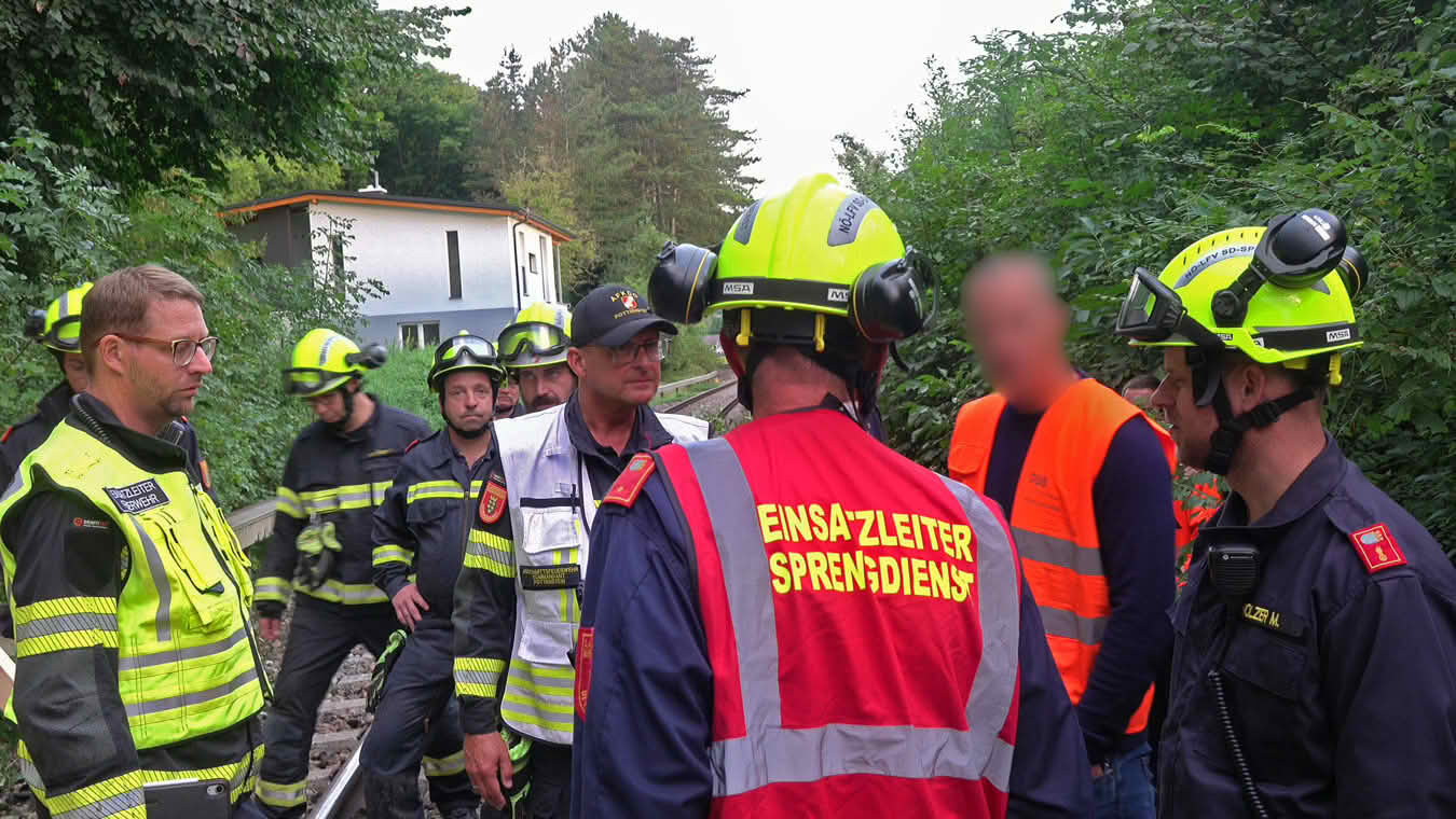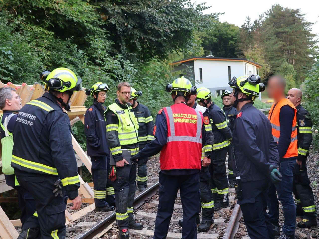 Bereits in den frühen Morgenstunden des Folgetages (12.09.2025) begann die Arbeiten mit der örtlichen Feuerwehr Berndorf-Stadt, Gemeindemitarbeiter von Berndorf, dem Sprengdienst Süd der Feuerwehr des NÖ Landesfeuerwehrverbandes, sowie Mitarbeiter der ÖBB.