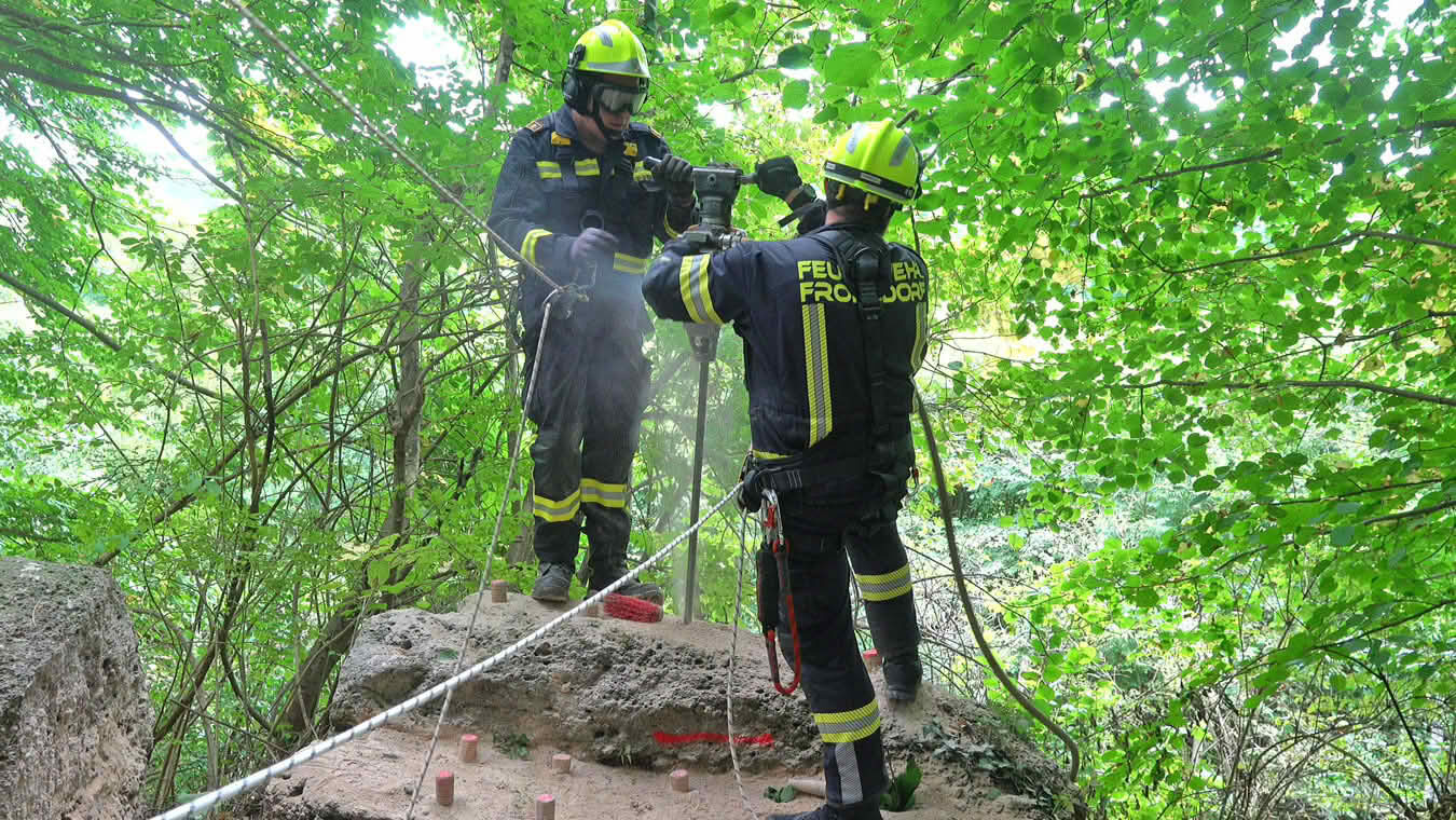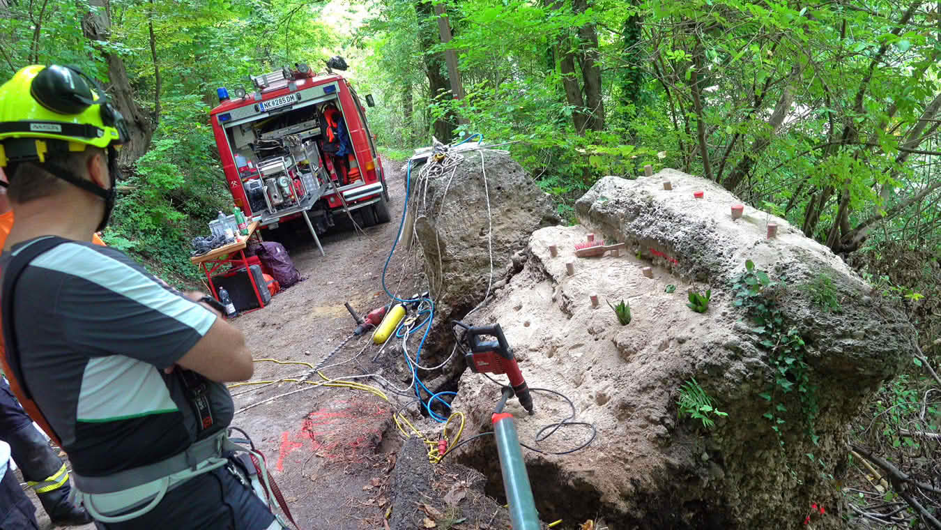 Kontrollierte Sprengung am Waldweg zwischen Berndorf und Pottenstein erfolgreich durchgeführt